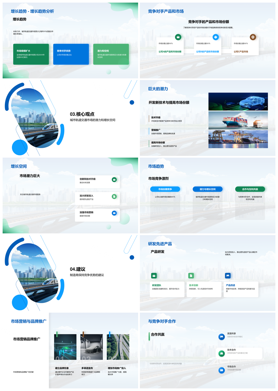 这是一张2025城轨市场现状趋势行业分析师设备制造商产品定位全球市场规模PPT模板,包含2025、城轨市场、现状、趋势、行业分析师、设备制造商、产品定位、全球市场规模等主题内容,也可用作2025城轨市场现状趋势、城轨市场现状趋势行业分析师、现状趋势行业分析师设备制造商、趋势行业分析师设备制造商产品定位、行业分析师设备制造商产品定位全球市场规模、2025城轨市场现状、城轨市场现状趋势、现状趋势行业分析师、趋势行业分析师设备制造商、行业分析师设备制造商产品定位、设备制造商产品定位全球市场规模、2025城轨市场、城轨市场现状、现状趋势、行业分析师设备制造商等PPT场景使用。 风云办公提供的2025城轨市场现状趋势行业分析师设备制造商产品定位全球市场规模PPT模板,下载格式为pptx,一共18页,作品中文字及图均可以修改和编辑,图片更改请在作品中右键图片并更换,文字修改请直接点击文字进行修改。
