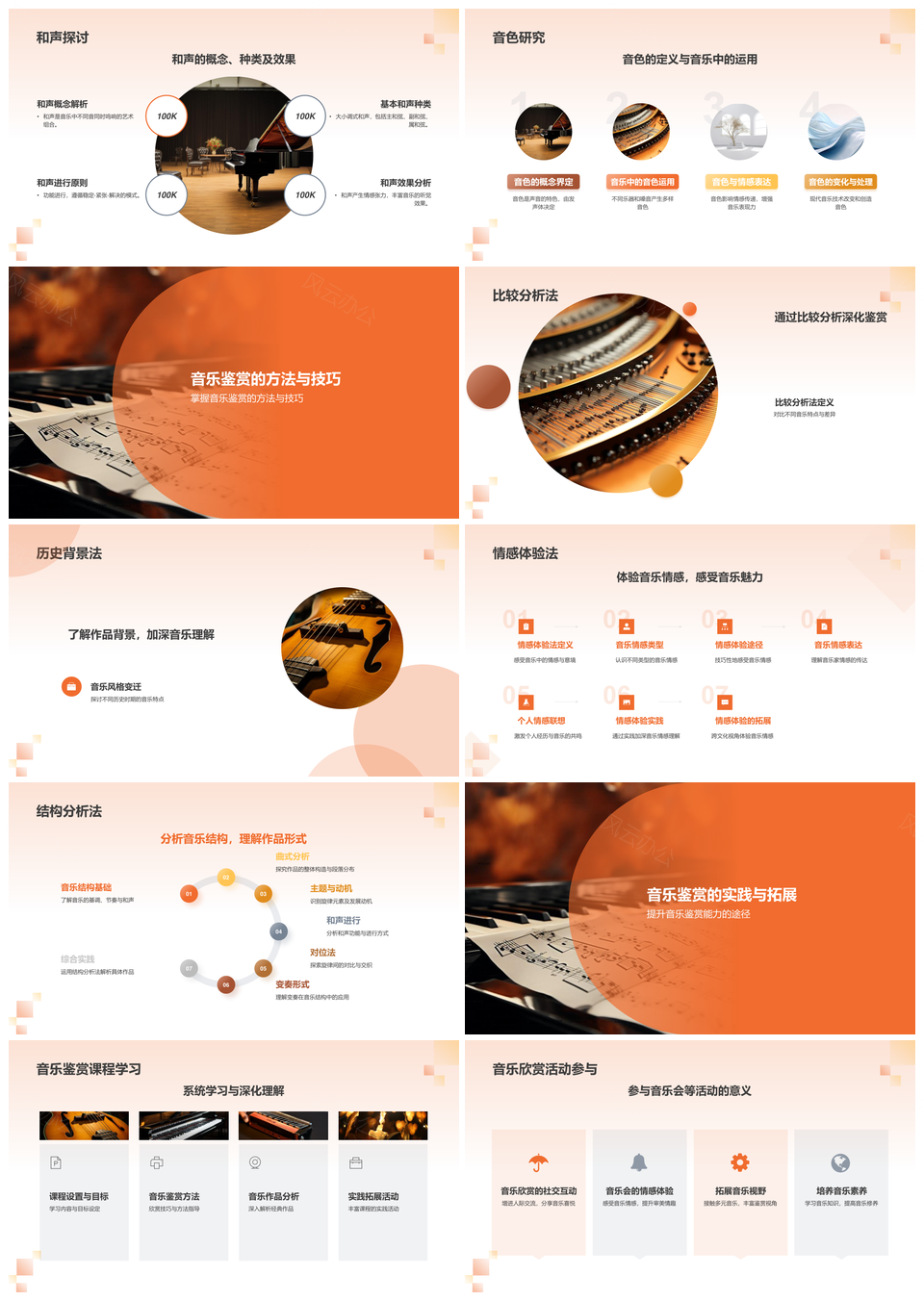 风云办公提供的古典乐谱彩图音符艺术文化鉴赏PPT模板,下载格式为pptx,一共20页,作品中文字及图均可以修改和编辑,图片更改请在作品中右键图片并更换,文字修改请直接点击文字进行修改。