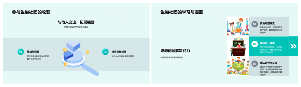 这是一张生物社团知识实践报告PPT模板,包含生物社团、知识、实践报告等主题内容,也可用作生物社团知识实践、社团知识实践报告、生物社团知识、社团知识实践、知识实践报告、生物社团实践、生物知识实践、社团实践报告、生物实践报告、生物社团报告、社团知识报告、生物知识报告、生物社团、社团知识、知识实践等PPT场景使用。 风云办公提供的生物社团知识实践报告PPT模板,下载格式为pptx,一共30页,作品中文字及图均可以修改和编辑,图片更改请在作品中右键图片并更换,文字修改请直接点击文字进行修改。