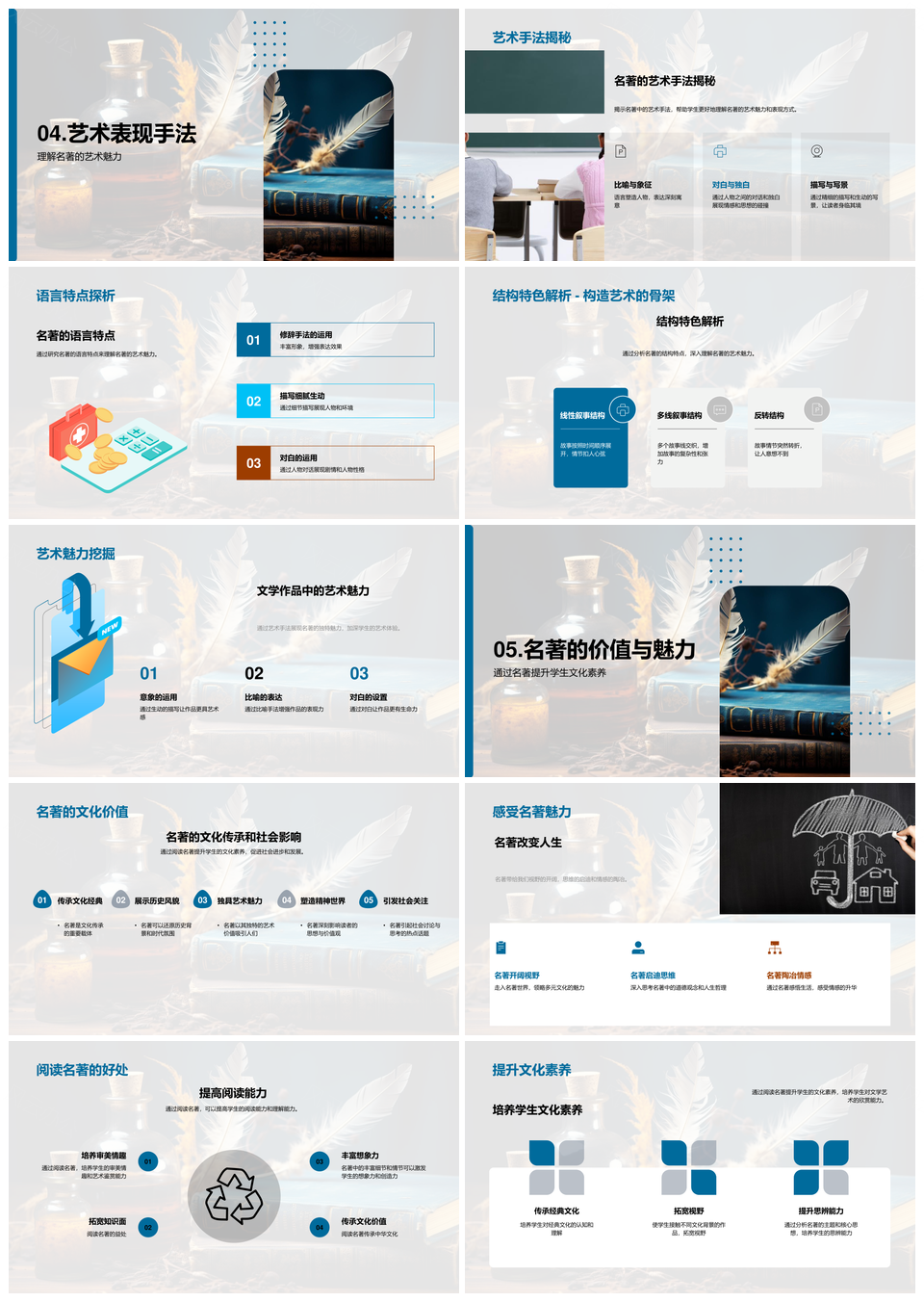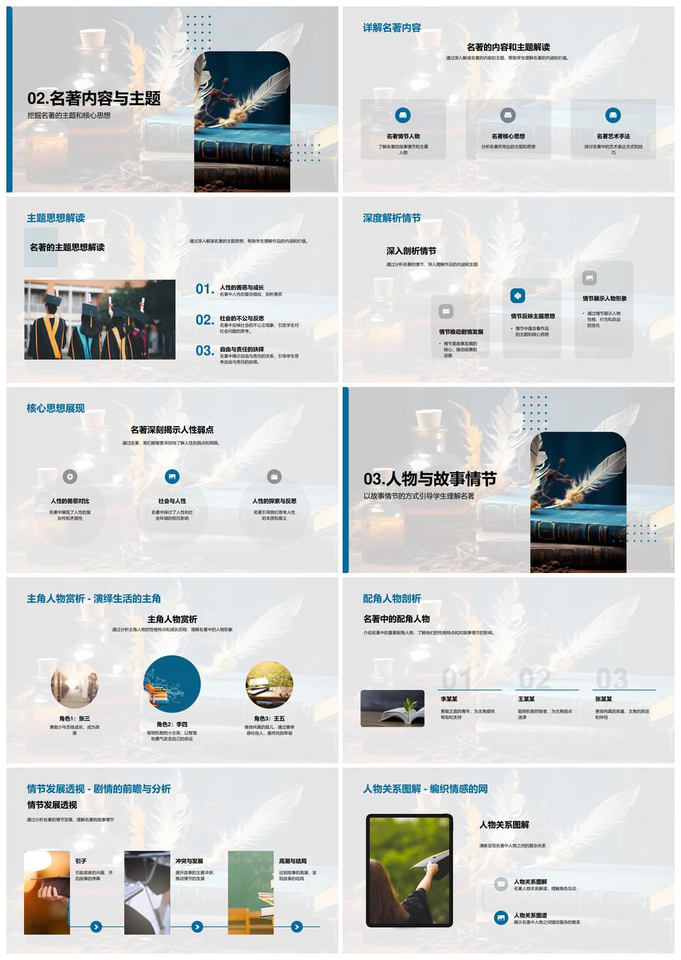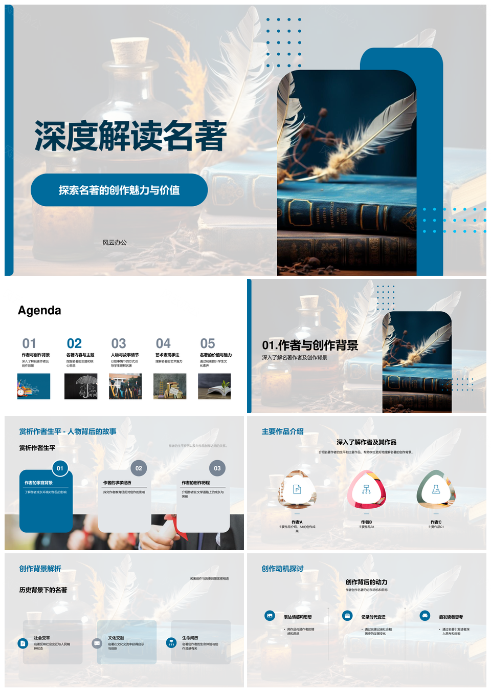 名著创作魅力与价值解析作者背景主题人物艺术PPT模板推荐