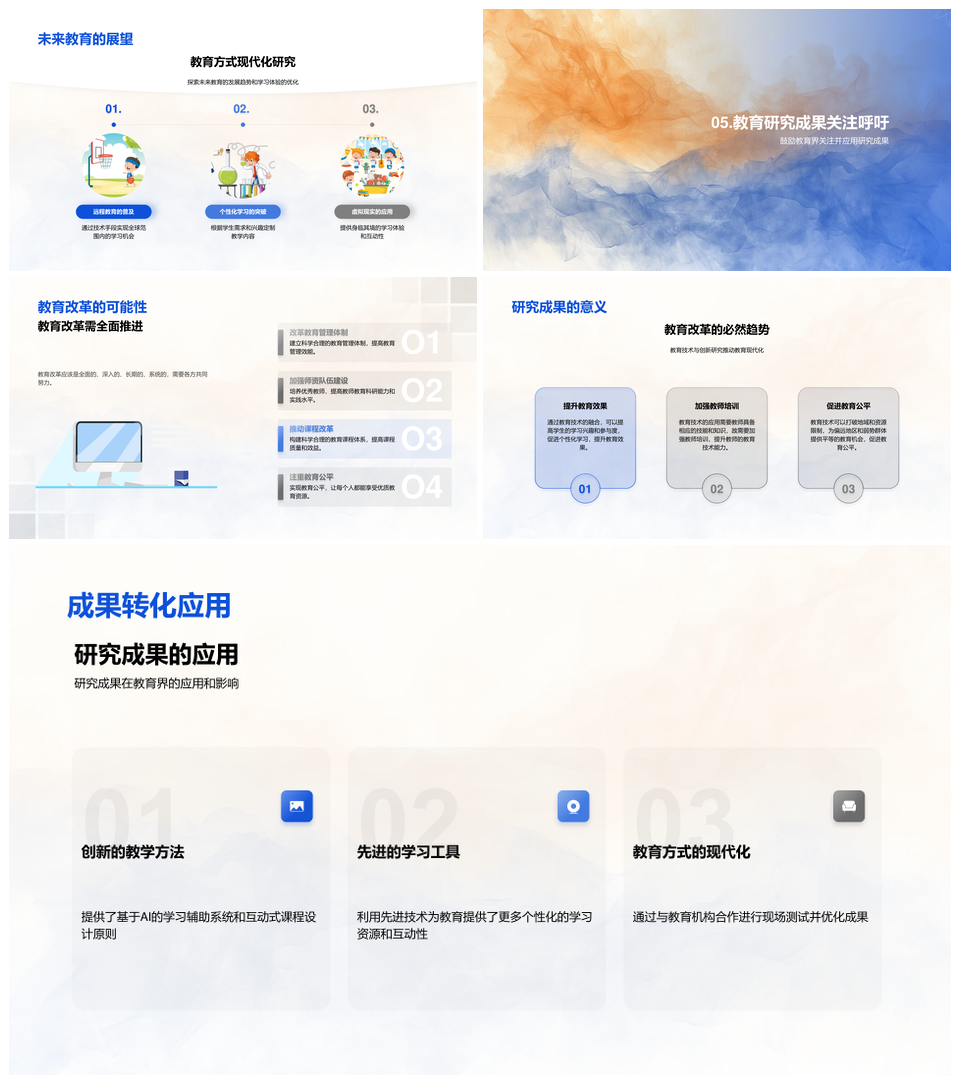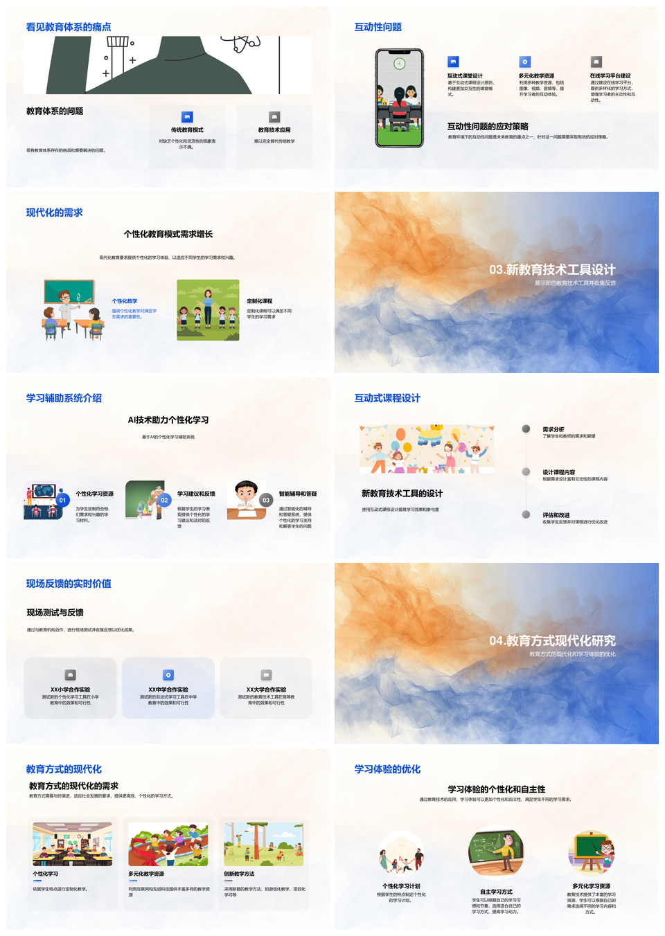 风云办公提供的教育技术创新与AI辅助系统应用探索PPT模板,下载格式为pptx,一共23页,作品中文字及图均可以修改和编辑,图片更改请在作品中右键图片并更换,文字修改请直接点击文字进行修改。