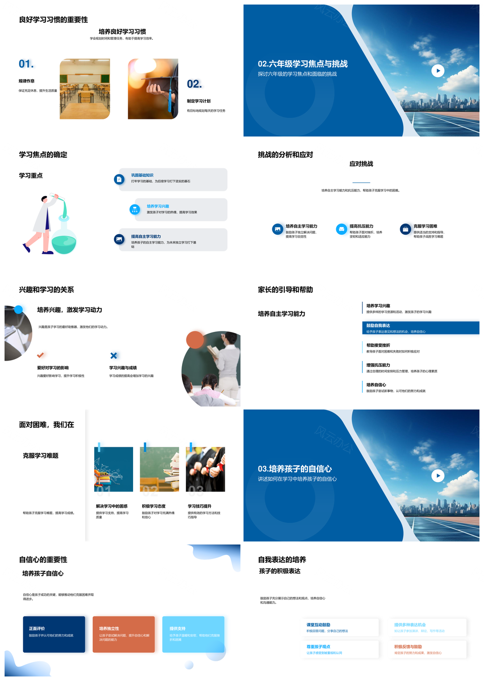 这是一张六年级家校共育自主学习课外活动成功起跑线PPT模板,包含六年级、家校、共育、自主学习、课外活动、成功、起跑线等主题内容,也可用作六年级家校共育自主学习课外活动、家校共育自主学习课外活动成功、自主学习课外活动成功起跑线、六年级课外活动成功起跑线、家校共育自主学习成功起跑线、六年级自主学习课外活动成功、六年级家校共育课外活动起跑线、家校共育课外活动成功起跑线、自主学习课外活动起跑线、六年级自主学习成功起跑线、家校共育自主学习成功、课外活动成功起跑线、六年级家校共育成功、自主学习课外活动成功、六年级课外活动成功等PPT场景使用。 风云办公提供的六年级家校共育自主学习课外活动成功起跑线PPT模板,下载格式为pptx,一共33页,作品中文字及图均可以修改和编辑,图片更改请在作品中右键图片并更换,文字修改请直接点击文字进行修改。