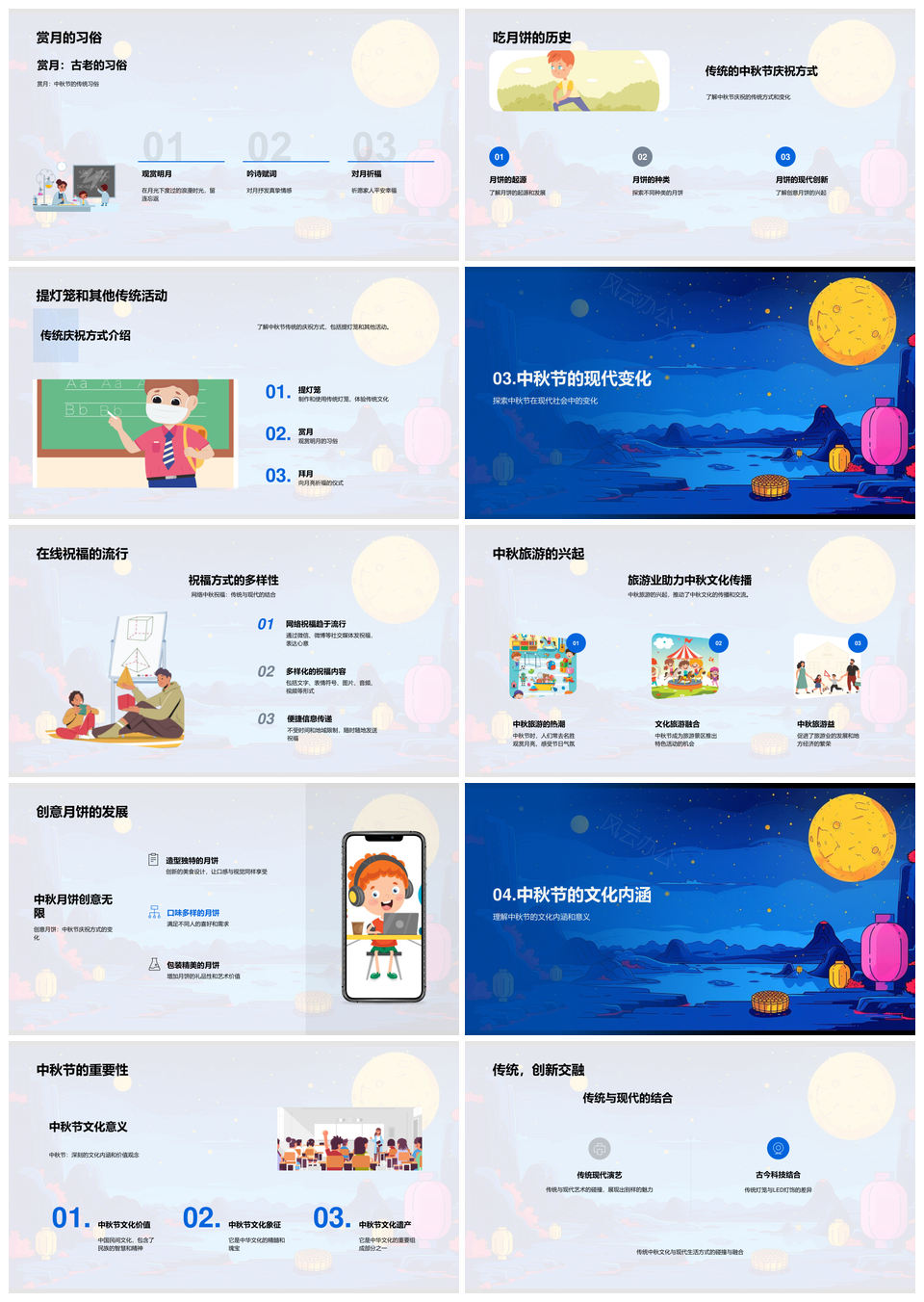 2025中秋节文化习俗演变赏月月饼灯笼旅游祝福报告PPT模板