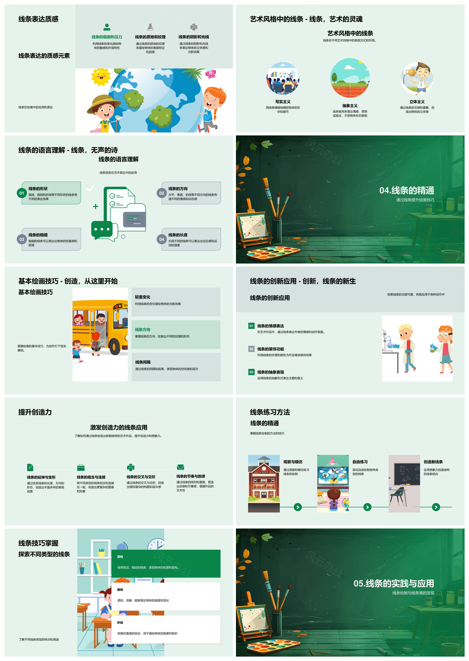 这是一张2025小学美术线条多样结构艺术创新技法教学PPT模板,包含2025、小学、美术、线条、多样、结构、艺术、创新、技法、教学等主题内容,也可用作小学美术线条多样、美术线条多样结构、线条多样结构艺术、多样结构艺术创新、结构艺术创新技法、艺术创新技法教学、小学美术线条、美术线条多样、线条多样结构、多样结构艺术、结构艺术创新、艺术创新技法、创新技法教学、小学美术、美术线条等PPT场景使用。 风云办公提供的2025小学美术线条多样结构艺术创新技法教学PPT模板,下载格式为pptx,一共33页,作品中文字及图均可以修改和编辑,图片更改请在作品中右键图片并更换,文字修改请直接点击文字进行修改。