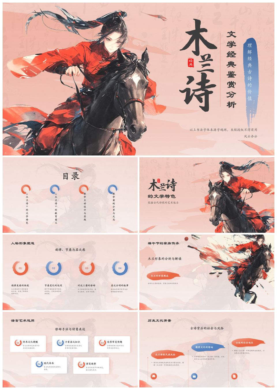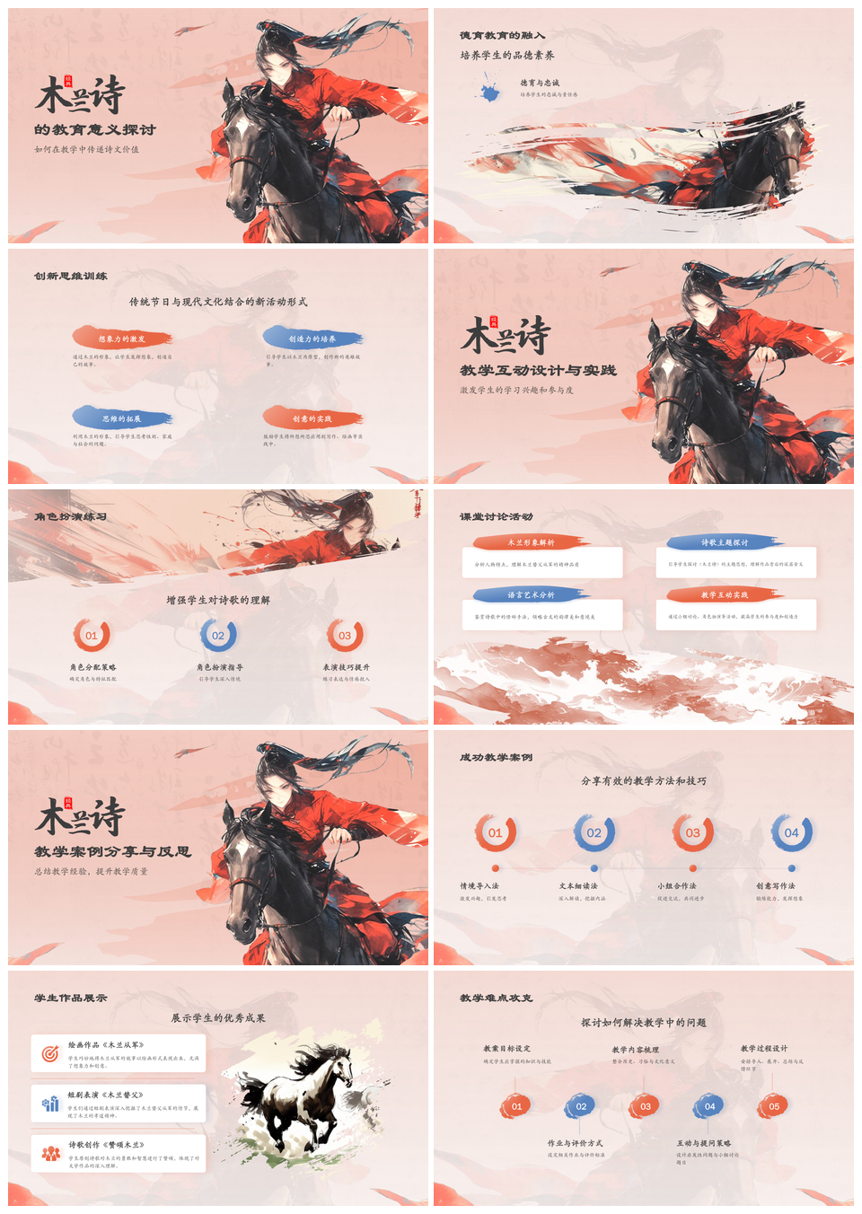木兰诗语文教学课件古典诗歌文学教育互动案例PPT模板推荐