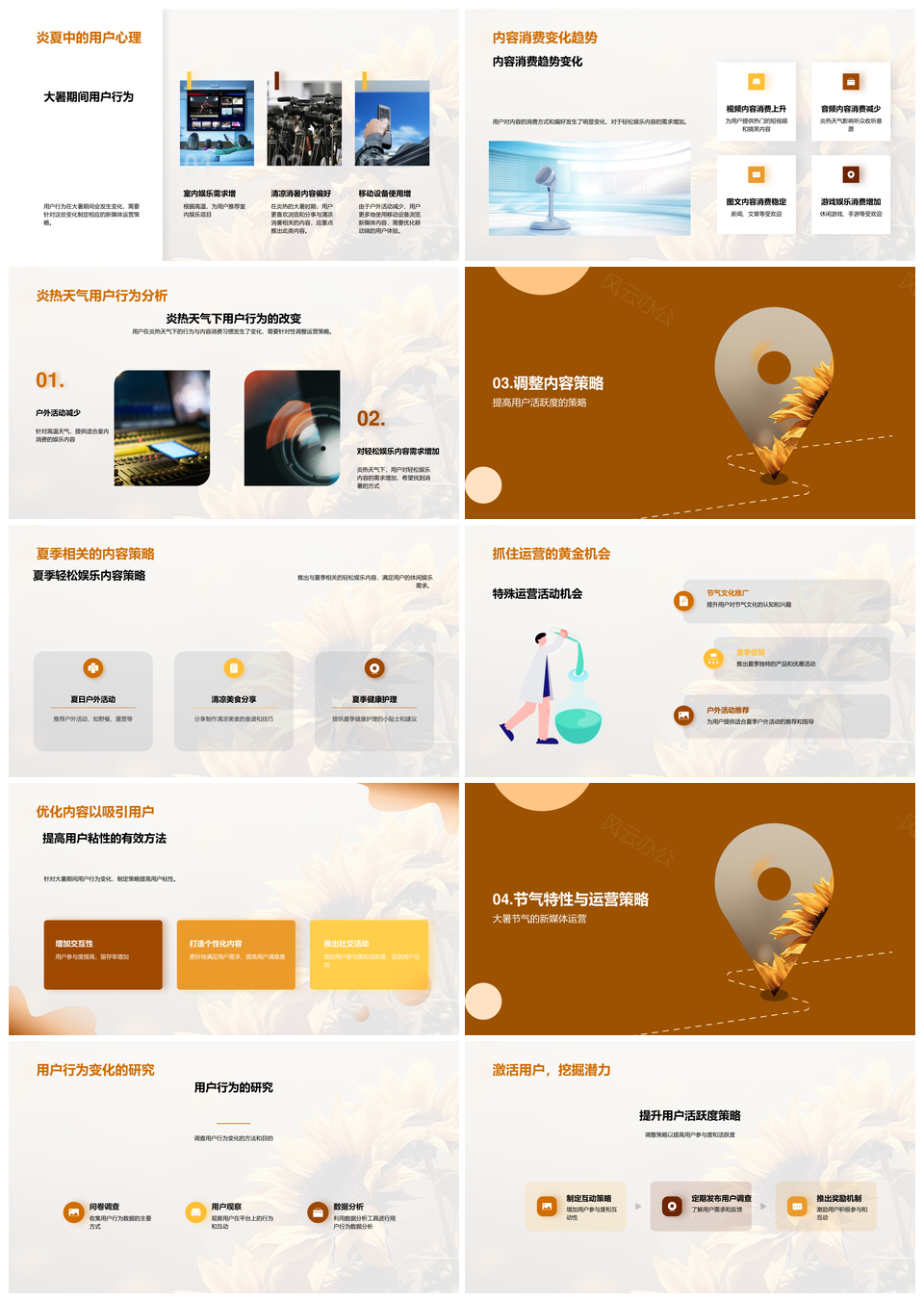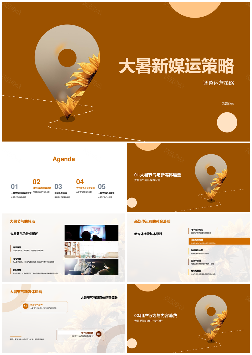 这是一张大暑新媒体运营策略结合节气文化夏季促销PPT模板,包含大暑、新媒体运营策略、节气文化、夏季促销等主题内容,也可用作大暑节气文化夏季促销、新媒体运营策略夏季促销、大暑新媒体运营策略、运营策略结合节气文化、结合节气文化促销、节气文化夏季促销、新媒体运营策略夏季、大暑节气文化促销、大暑结合夏季促销、新媒体结合节气文化、大暑促销、夏季促销、新媒体运营、节气文化促销、运营策略夏季等PPT场景使用。 风云办公提供的大暑新媒体运营策略结合节气文化夏季促销PPT模板,下载格式为pptx,一共23页,作品中文字及图均可以修改和编辑,图片更改请在作品中右键图片并更换,文字修改请直接点击文字进行修改。