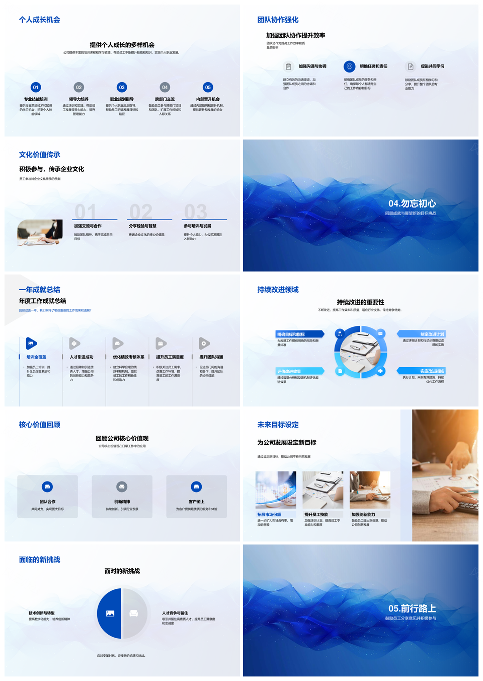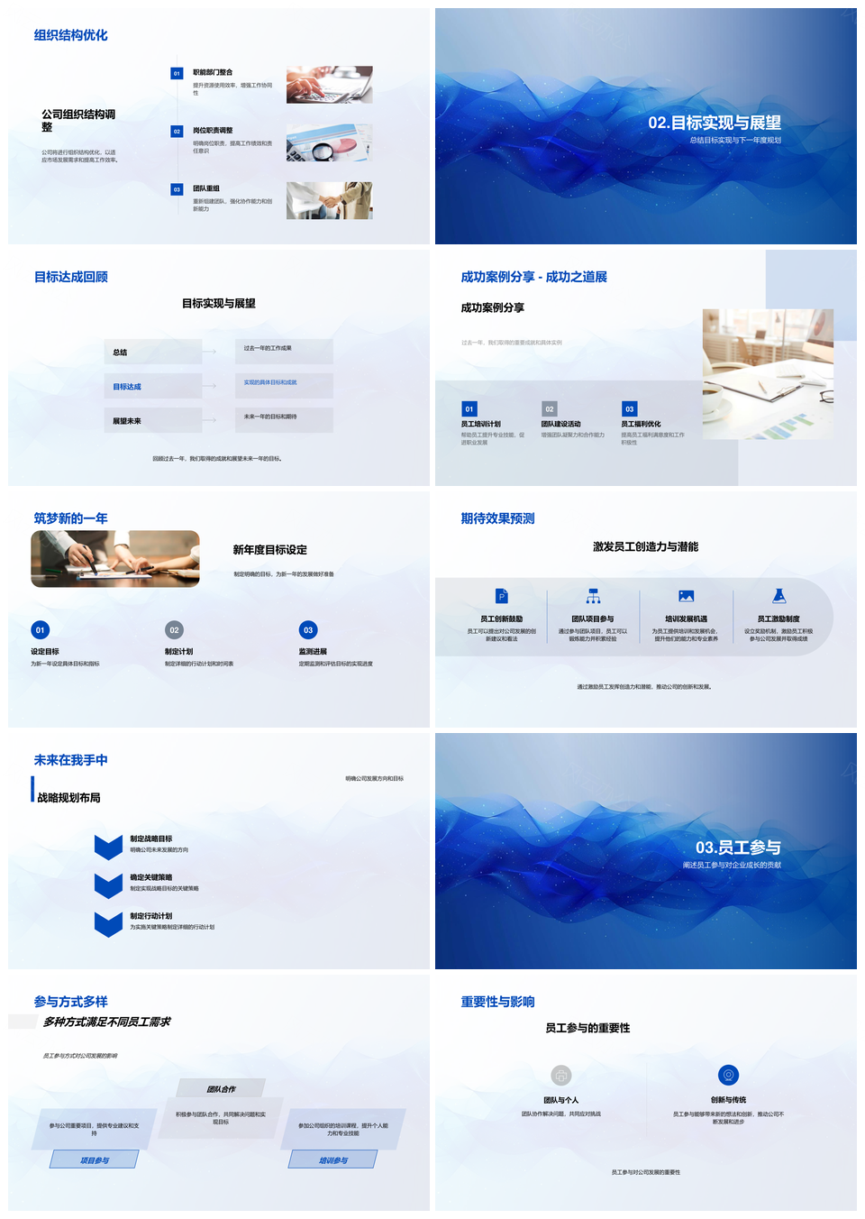 这是一张人力资源总监全员年报公司发展行业趋势员工参与目标达成PPT模板,包含人力资源总监、全员、年报、公司、发展、行业、趋势、员工、参与、目标、达成等主题内容,也可用作人力资源总监全员年报公司发展、全员年报公司发展行业趋势、公司发展行业趋势员工参与、行业趋势员工参与目标达成、人力资源总监全员年报、全员年报行业趋势员工、年报公司发展行业趋势、公司发展员工参与目标、行业趋势目标达成人力资源、员工参与目标达成年报、人力资源总监公司发展、全员行业趋势目标、年报员工参与公司、目标达成行业趋势、公司发展目标达成等PPT场景使用。 风云办公提供的人力资源总监全员年报公司发展行业趋势员工参与目标达成PPT模板,下载格式为pptx,一共33页,作品中文字及图均可以修改和编辑,图片更改请在作品中右键图片并更换,文字修改请直接点击文字进行修改。