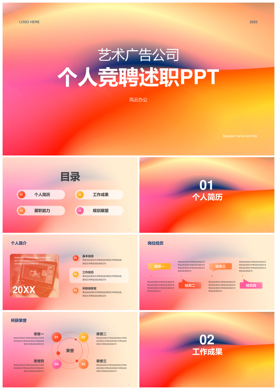 2025红黄渐变简约艺术广告竞聘述职PPT模板