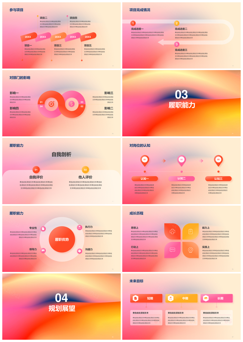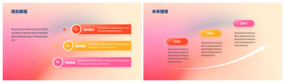 这是一张2025红黄渐变简约艺术广告竞聘述职PPT模板,包含2025、红黄、渐变、简约、艺术、广告、竞聘、述职等主题内容,也可用作红黄渐变简约艺术、红黄渐变简约广告、红黄渐变艺术广告、红黄简约艺术广告、渐变简约艺术广告、简约艺术广告竞聘、艺术广告竞聘述职、红黄渐变简约、红黄渐变艺术、红黄简约艺术、渐变简约艺术、简约艺术广告、艺术广告竞聘、广告竞聘述职、红黄渐变广告等PPT场景使用。 风云办公提供的2025红黄渐变简约艺术广告竞聘述职PPT模板,下载格式为pptx,一共20页,作品中文字及图均可以修改和编辑,图片更改请在作品中右键图片并更换,文字修改请直接点击文字进行修改。