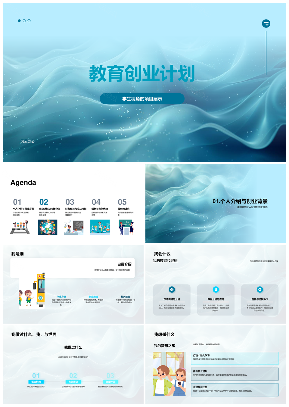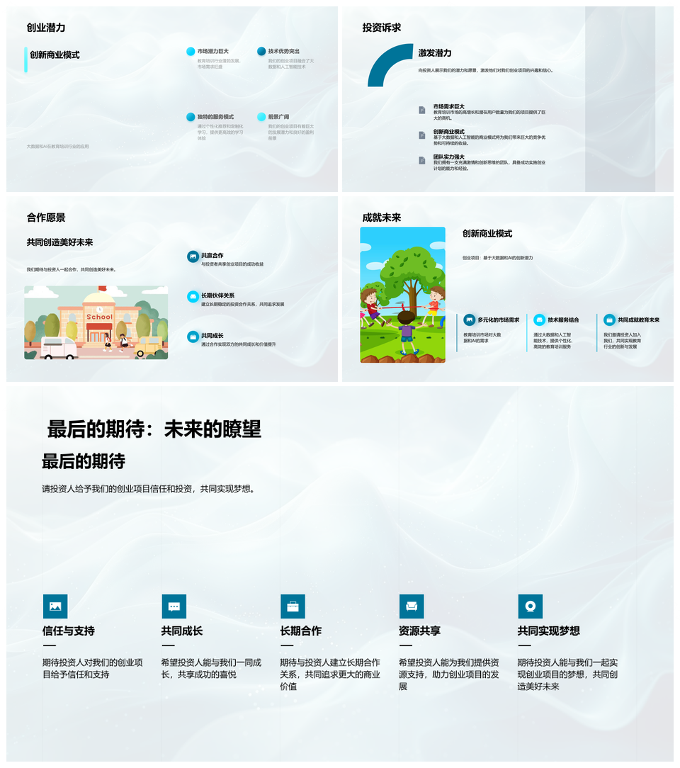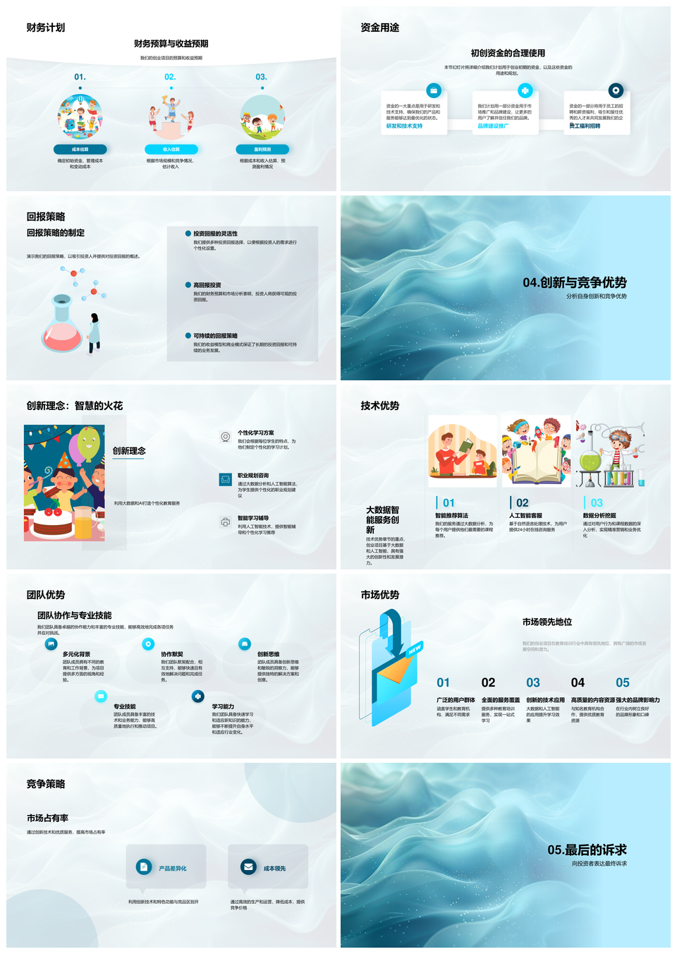 教育创业计划商业模式市场分析财务收益大数据人工智能PPT模板推荐
