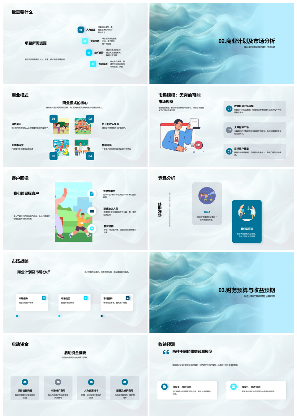 教育创业计划商业模式市场分析财务收益大数据人工智能PPT模板
