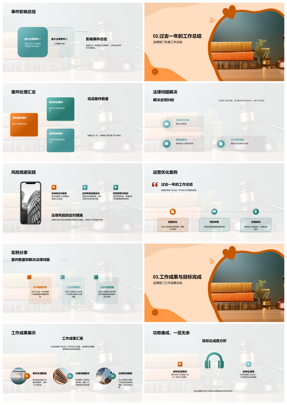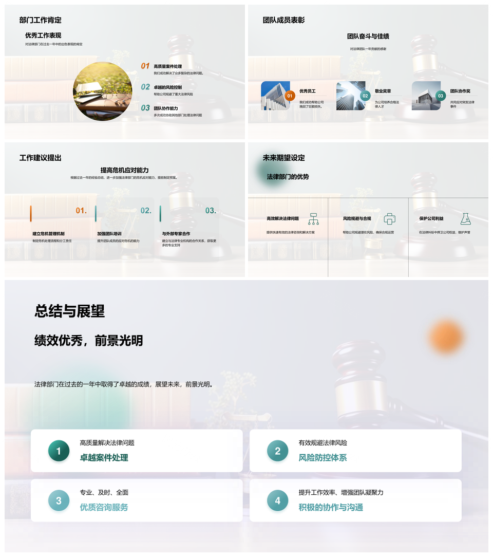 法律部门年终法槌案件处理风险规避成果总结PPT模板推荐