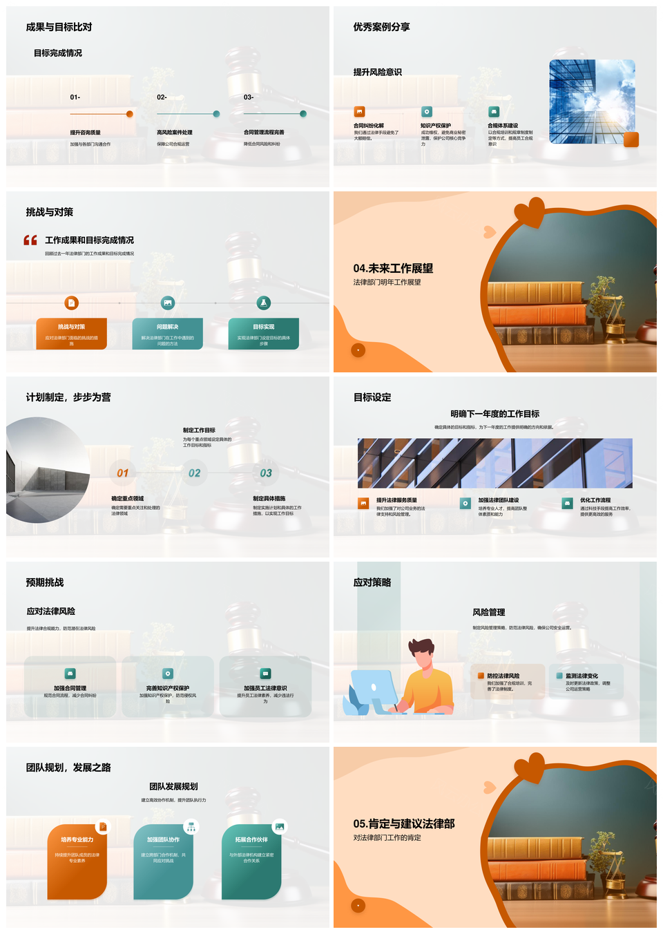这是一张法律部门年终法槌案件处理风险规避成果总结PPT模板,包含法律部门、年终、法槌、案件处理、风险规避、成果总结等主题内容,也可用作法律部门年终法槌案件处理风险规避、法律部门年终案件处理风险规避、法律部门案件处理风险规避成果总结、年终法槌案件处理风险规避、法槌案件处理风险规避成果总结、法律部门年终风险规避成果总结、法律部门年终案件处理、法律部门风险规避成果总结、年终法槌案件处理、法槌案件处理风险规避、案件处理风险规避成果总结、法律部门年终风险规避、年终风险规避成果总结、案件处理风险规避、风险规避成果总结等PPT场景使用。 风云办公提供的法律部门年终法槌案件处理风险规避成果总结PPT模板,下载格式为pptx,一共33页,作品中文字及图均可以修改和编辑,图片更改请在作品中右键图片并更换,文字修改请直接点击文字进行修改。