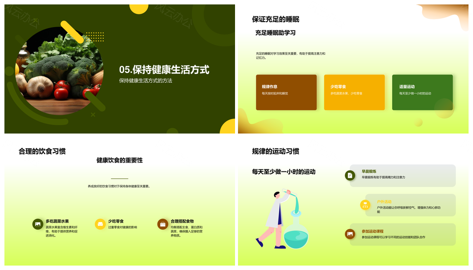 风云办公提供的培养五年级学生健康生活习惯PPT模板,下载格式为pptx,一共22页,作品中文字及图均可以修改和编辑,图片更改请在作品中右键图片并更换,文字修改请直接点击文字进行修改。