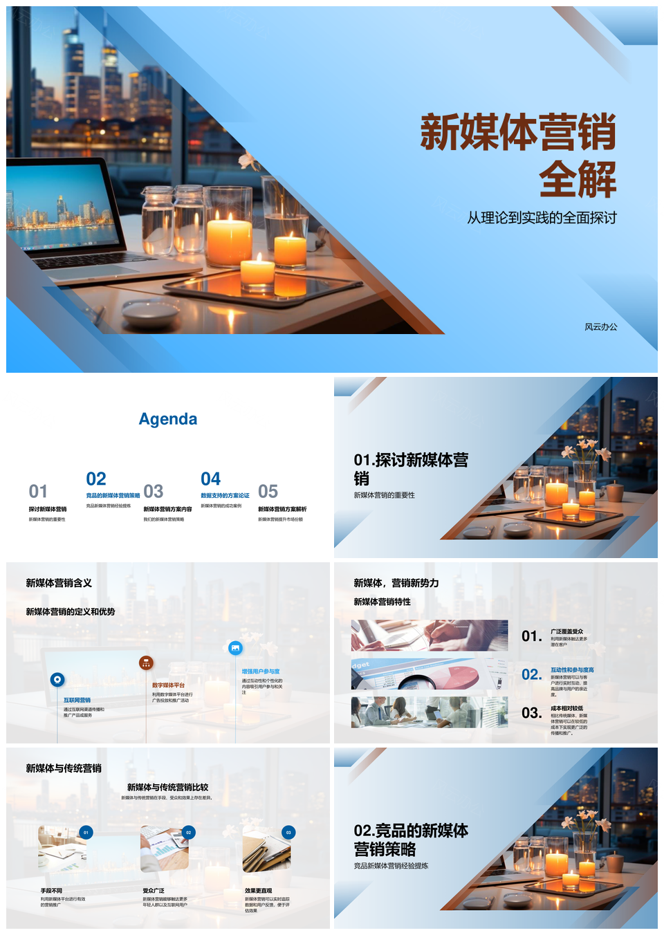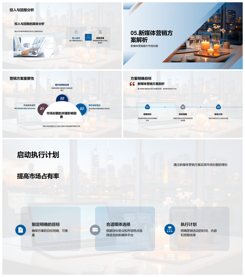 新媒体营销竞品策略与传统市场份额分析PPT模板推荐