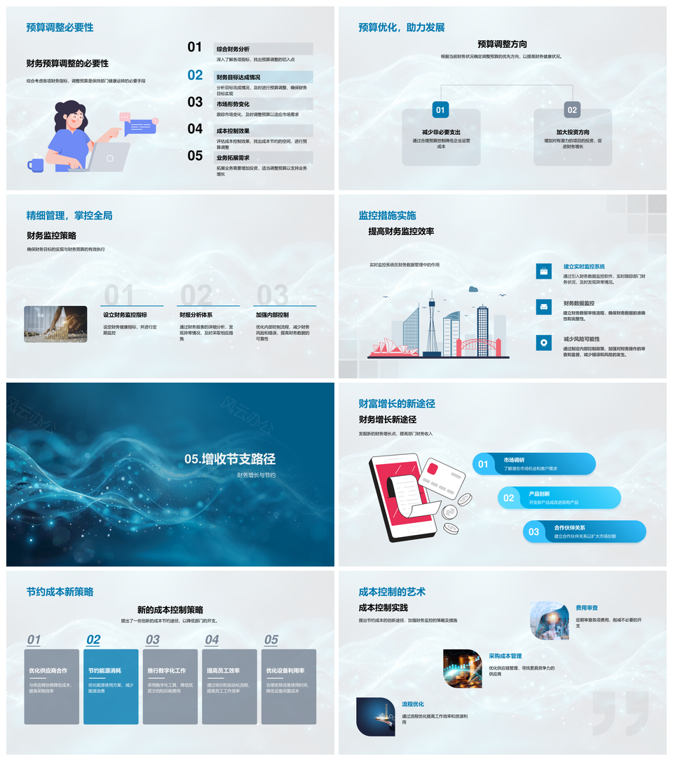 季度财务报告规划收支利润资产负债现金流目标成本预算分析PPT模板