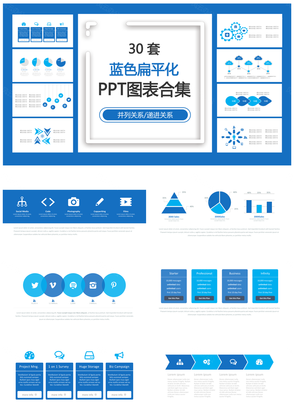 蓝色扁平化PPT模板