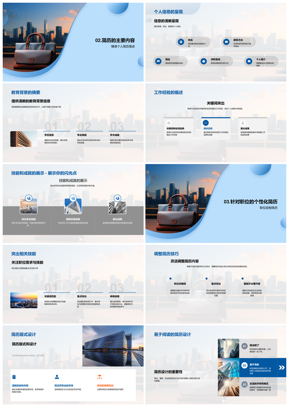 精准简历制作攻略个人信息教育背景工作经验技能成就避错PPT模板推荐