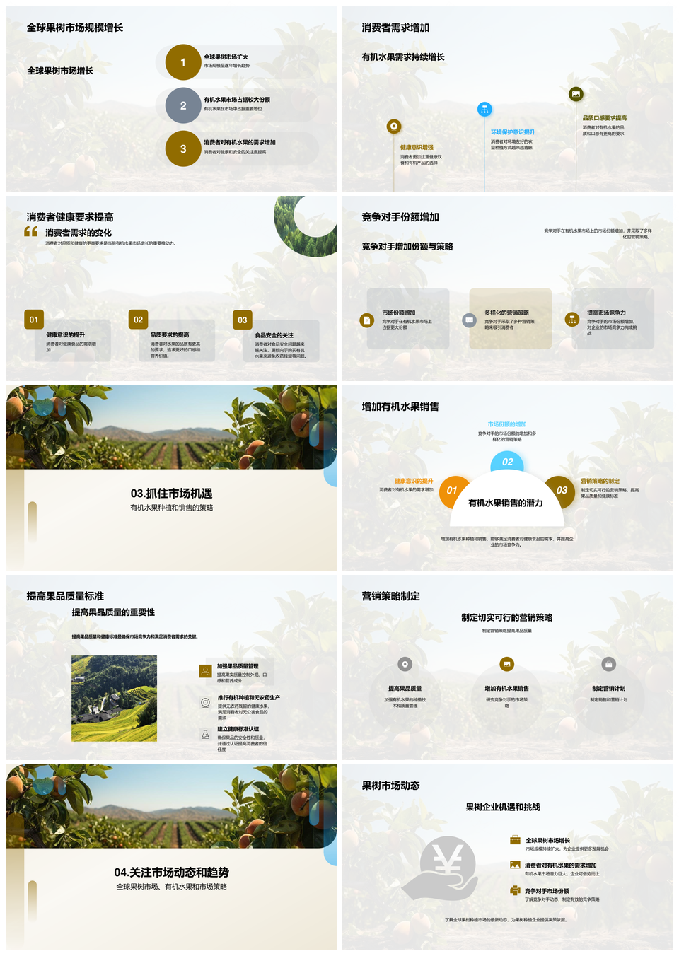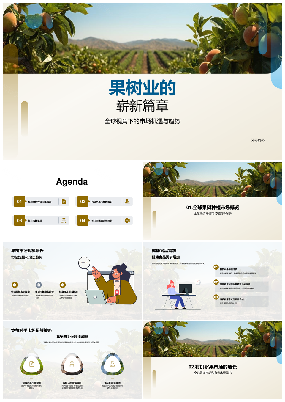 风云办公提供的全球果树种植市场健康趋势增长分析PPT模板,下载格式为pptx,一共21页,作品中文字及图均可以修改和编辑,图片更改请在作品中右键图片并更换,文字修改请直接点击文字进行修改。