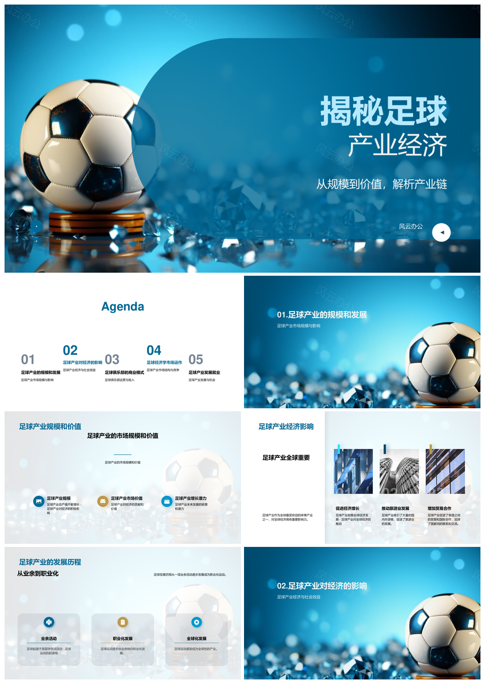风云办公提供的足球产业经济学发展历程影响市场规模PPT模板,下载格式为pptx,一共24页,作品中文字及图均可以修改和编辑,图片更改请在作品中右键图片并更换,文字修改请直接点击文字进行修改。