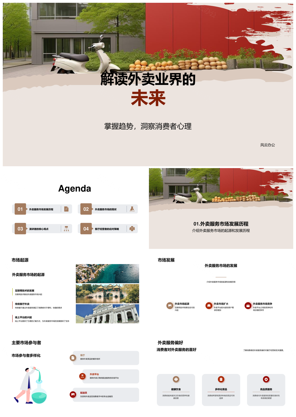 外卖市场增长预测与竞争因素分析PPT模板推荐