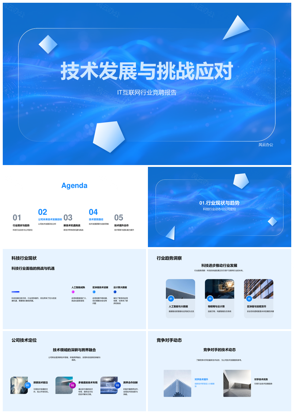 风云办公提供的IT技术发展挑战应对竞聘协调报告PPT模板,下载格式为pptx,一共27页,作品中文字及图均可以修改和编辑,图片更改请在作品中右键图片并更换,文字修改请直接点击文字进行修改。