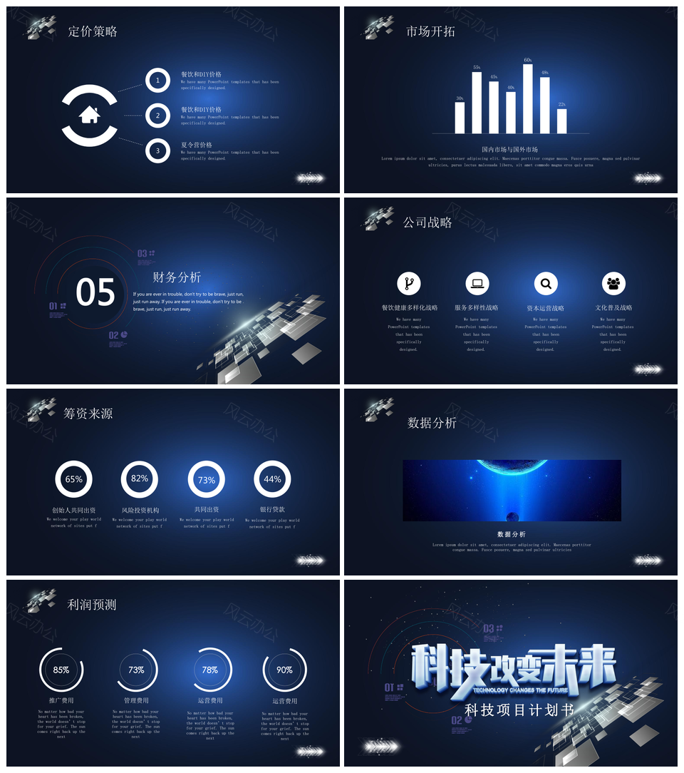 这是一张科技项目计划书PPT模板,包含科技、项目、计划书等主题内容,也可用作科技、项目、计划书 科技项目计划书、科技项目、科技计划书、项目计划书等PPT场景使用。 风云办公提供的科技项目计划书PPT模板,下载格式为pptx,一共25页,作品中文字及图均可以修改和编辑,图片更改请在作品中右键图片并更换,文字修改请直接点击文字进行修改。