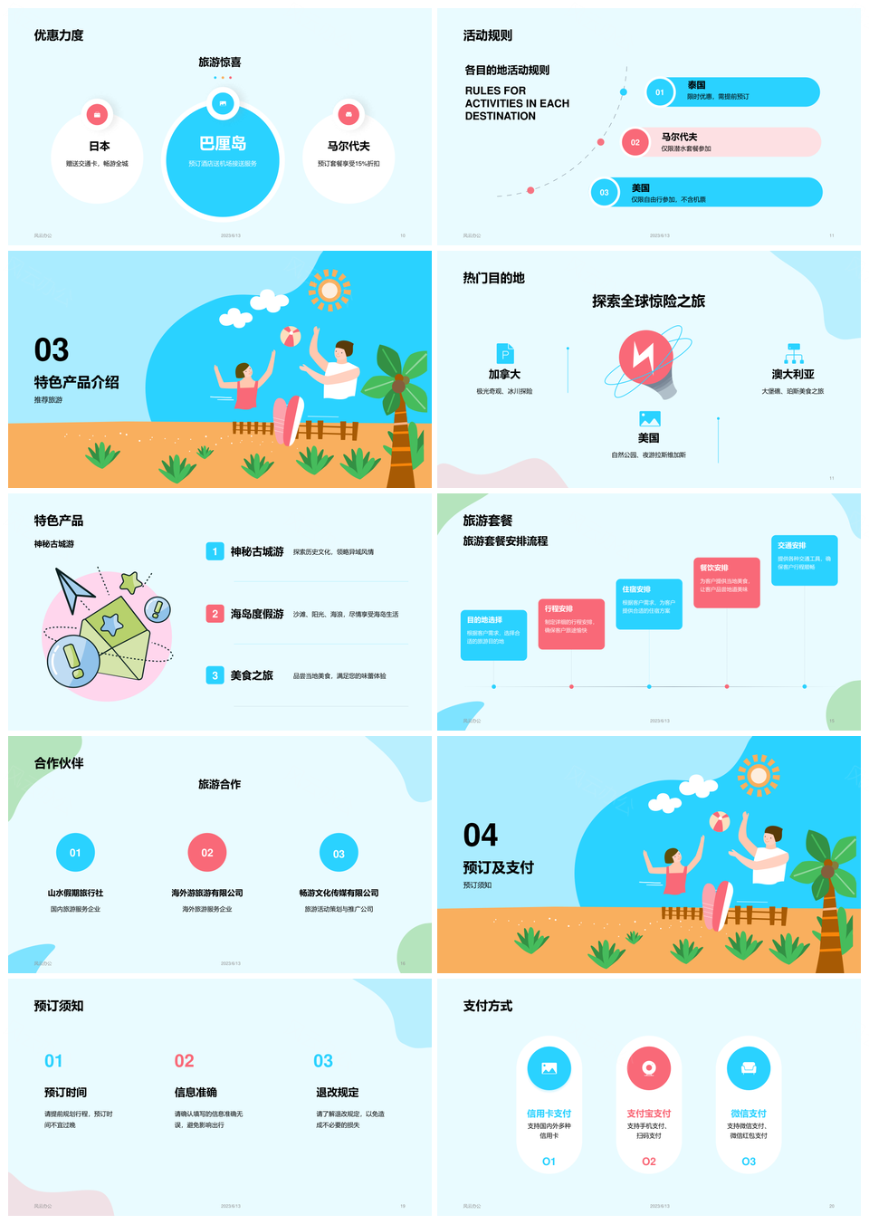 风云办公提供的蓝色插画暑期旅游狂欢节CTR模板,下载格式为pptx,一共20页,作品中文字及图均可以修改和编辑,图片更改请在作品中右键图片并更换,文字修改请直接点击文字进行修改。