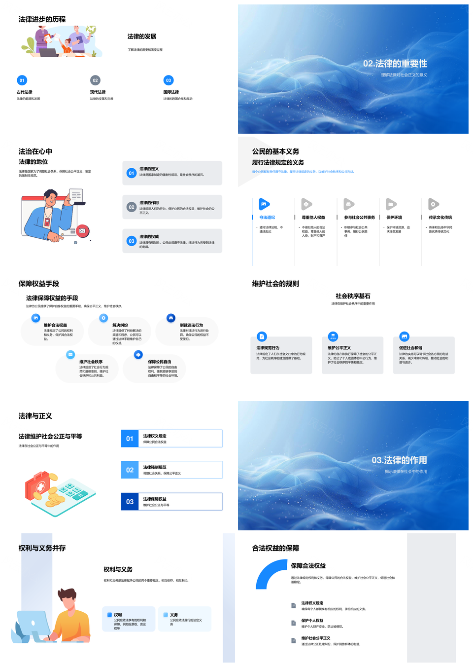 法治社会公民权益义务法律守护生活PPT模板推荐