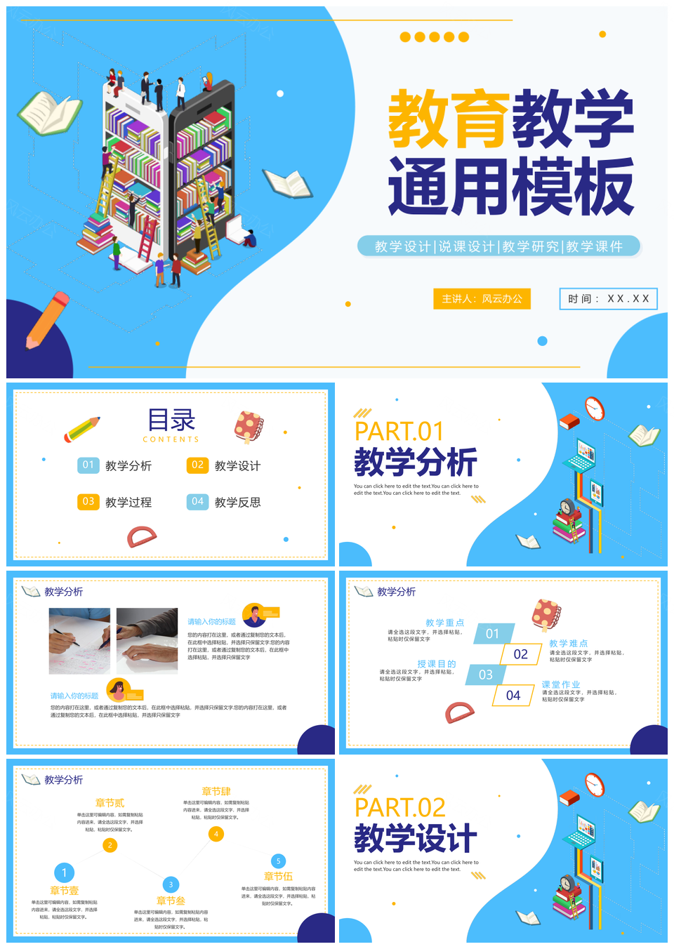 风云办公提供的清新蓝色扁平简约教师教学课件PPT模板,下载格式为pptx,一共19页,作品中文字及图均可以修改和编辑,图片更改请在作品中右键图片并更换,文字修改请直接点击文字进行修改。