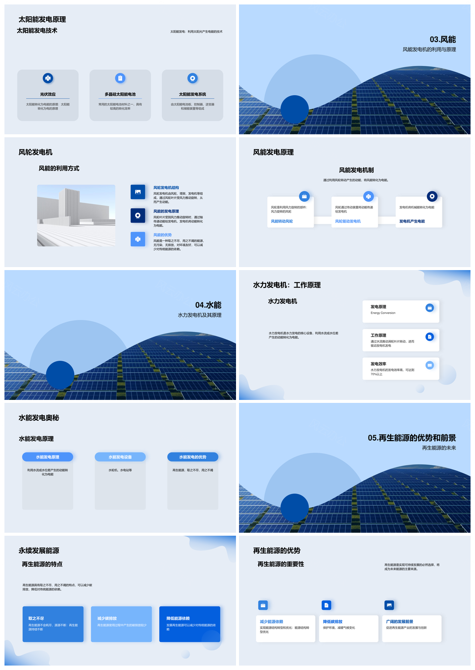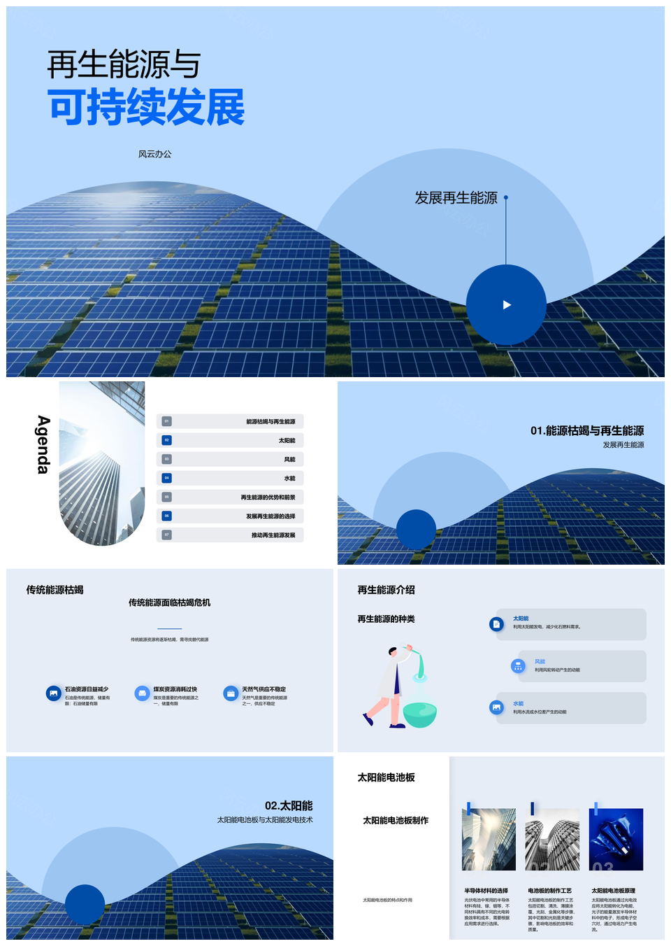这是一张再生能源太阳能风能水能推动可持续发展PPT模板,包含再生能源、太阳能、风能、水能、推动、可持续发展等主题内容,也可用作再生能源太阳能推动可持续发展、再生能源推动可持续发展、太阳能推动可持续发展、风能推动可持续发展、水能推动可持续发展、再生能源太阳能风能、再生能源风能水能、太阳能风能水能、推动可持续发展、再生能源推动、太阳能推动、风能推动、水能推动、再生能源太阳能、太阳能风能等PPT场景使用。 风云办公提供的再生能源太阳能风能水能推动可持续发展PPT模板,下载格式为pptx,一共26页,作品中文字及图均可以修改和编辑,图片更改请在作品中右键图片并更换,文字修改请直接点击文字进行修改。