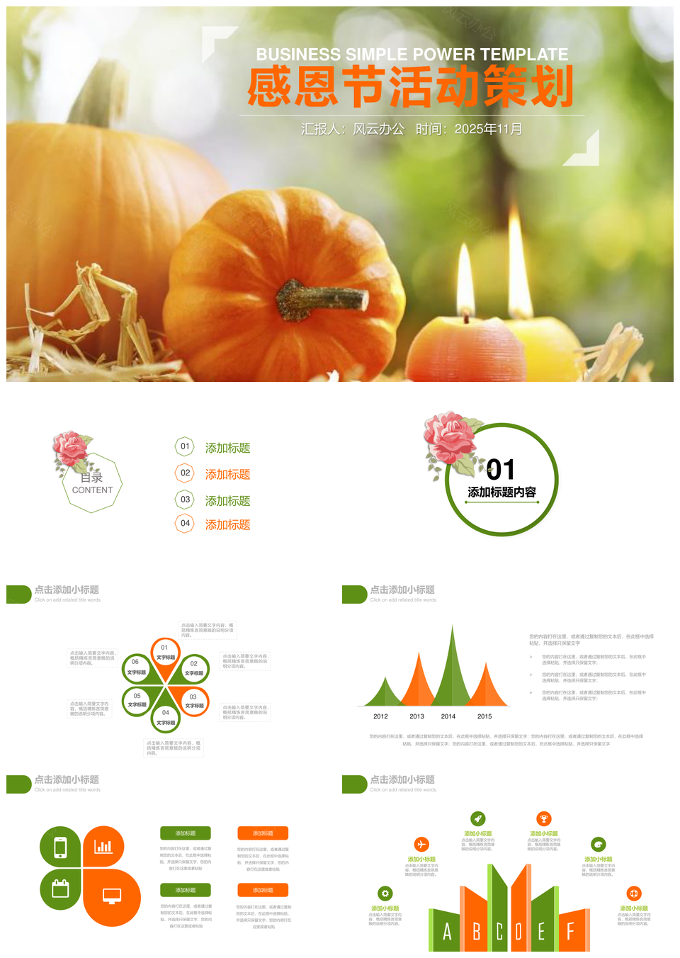 这是一张2025感恩节活动策划PPT模板,包含2025、感恩节、活动策划等主题内容,也可用作2025、感恩节、活动、策划 2025感恩节活动策划、2025感恩节活动、2025感恩节策划、2025活动策划、感恩节活动策划、2025感恩节、2025活动、2025策划、感恩节活动、感恩节策划、活动策划等PPT场景使用。 风云办公提供的2025感恩节活动策划PPT模板,下载格式为pptx,一共30页,作品中文字及图均可以修改和编辑,图片更改请在作品中右键图片并更换,文字修改请直接点击文字进行修改。