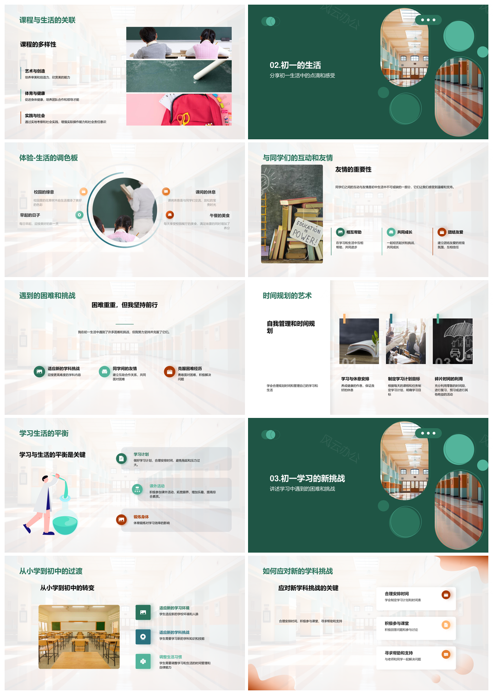 初中新篇迎课程挑战筑友情成长校园点滴PPT模板推荐