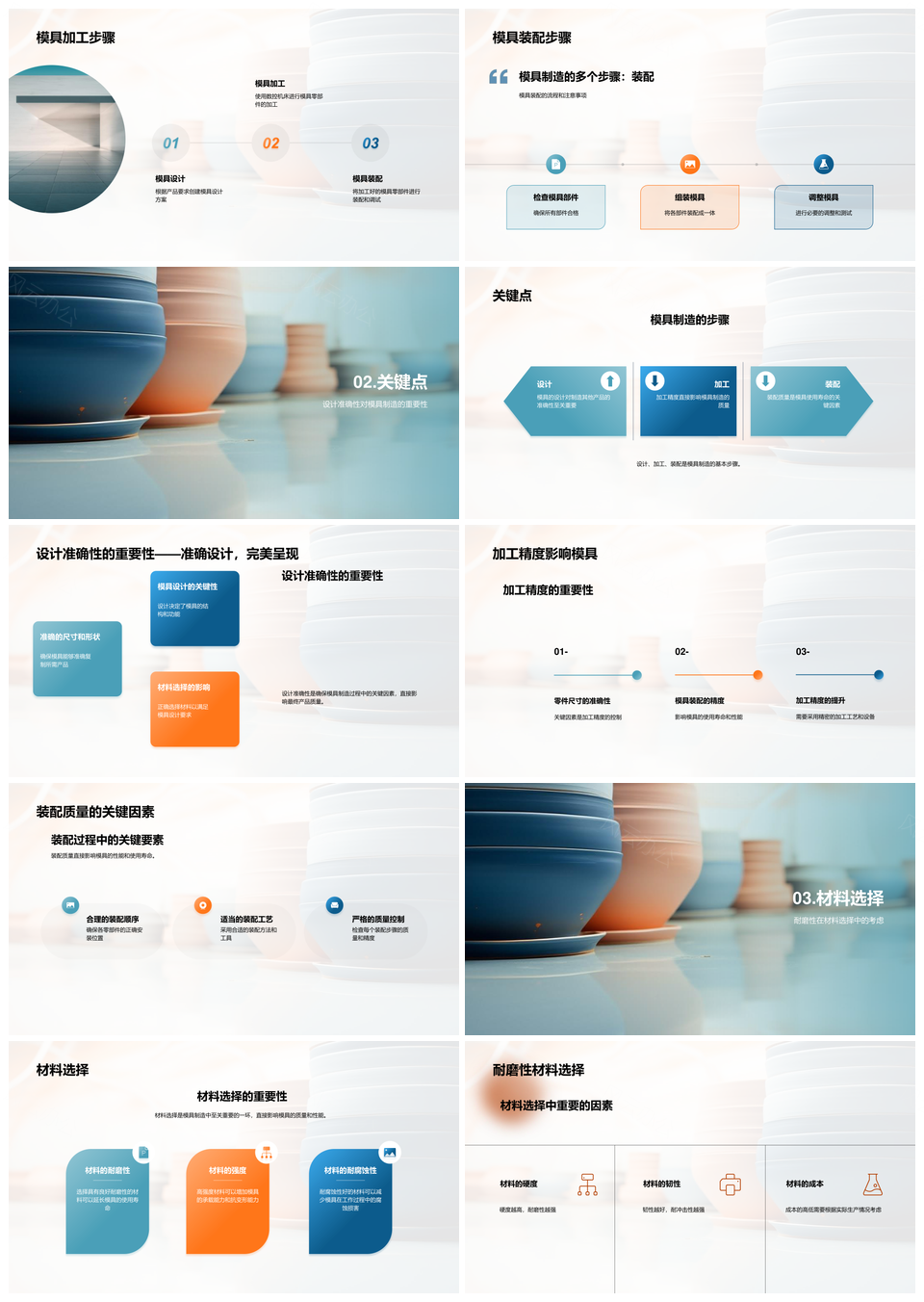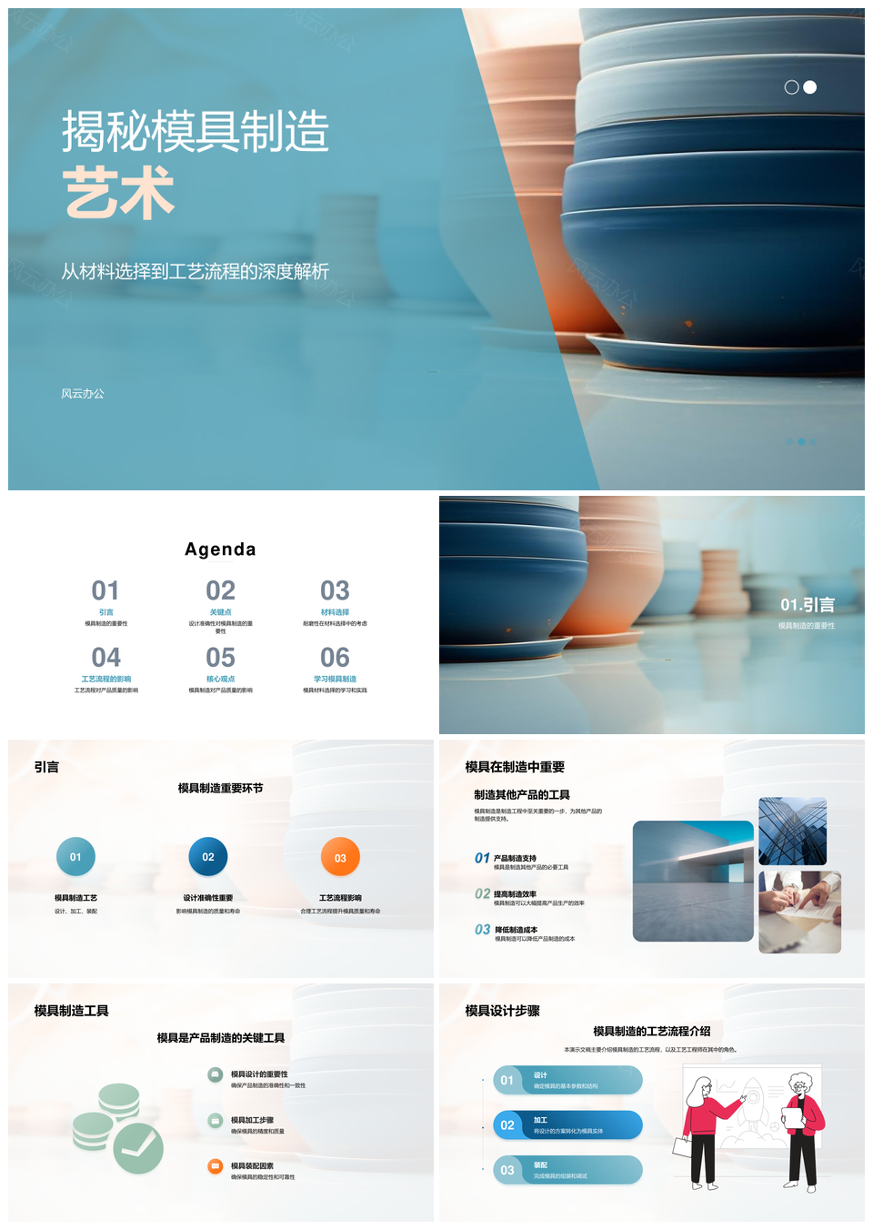 风云办公提供的模具制造工艺流程设计加工装配全解析PPT模板,下载格式为pptx,一共33页,作品中文字及图均可以修改和编辑,图片更改请在作品中右键图片并更换,文字修改请直接点击文字进行修改。