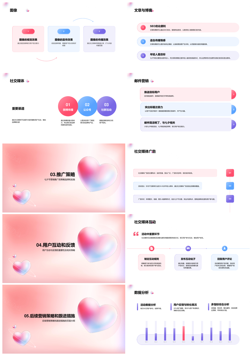 这是一张粉色创意七夕情人节浪漫心形营销策划PPT模板,包含粉色、创意、七夕、情人节、浪漫、心形、营销、策划等主题内容,也可用作粉色创意七夕情人节、创意七夕情人节浪漫、七夕情人节浪漫心形、情人节浪漫心形营销、浪漫心形营销策划、心形营销策划创意、粉色创意七夕、创意七夕情人节、七夕情人节浪漫、情人节浪漫心形、浪漫心形营销、心形营销策划、营销策划创意、粉色创意、七夕情人节等PPT场景使用。