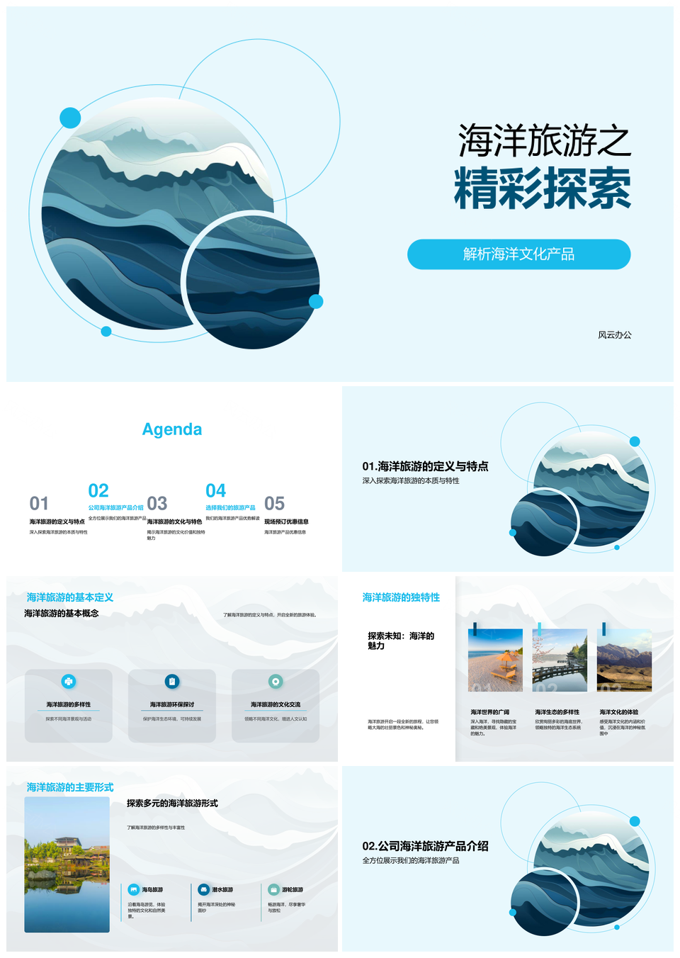 风云办公提供的海洋旅游文化展专家服务与海浪之旅PPT模板,下载格式为pptx,一共23页,作品中文字及图均可以修改和编辑,图片更改请在作品中右键图片并更换,文字修改请直接点击文字进行修改。