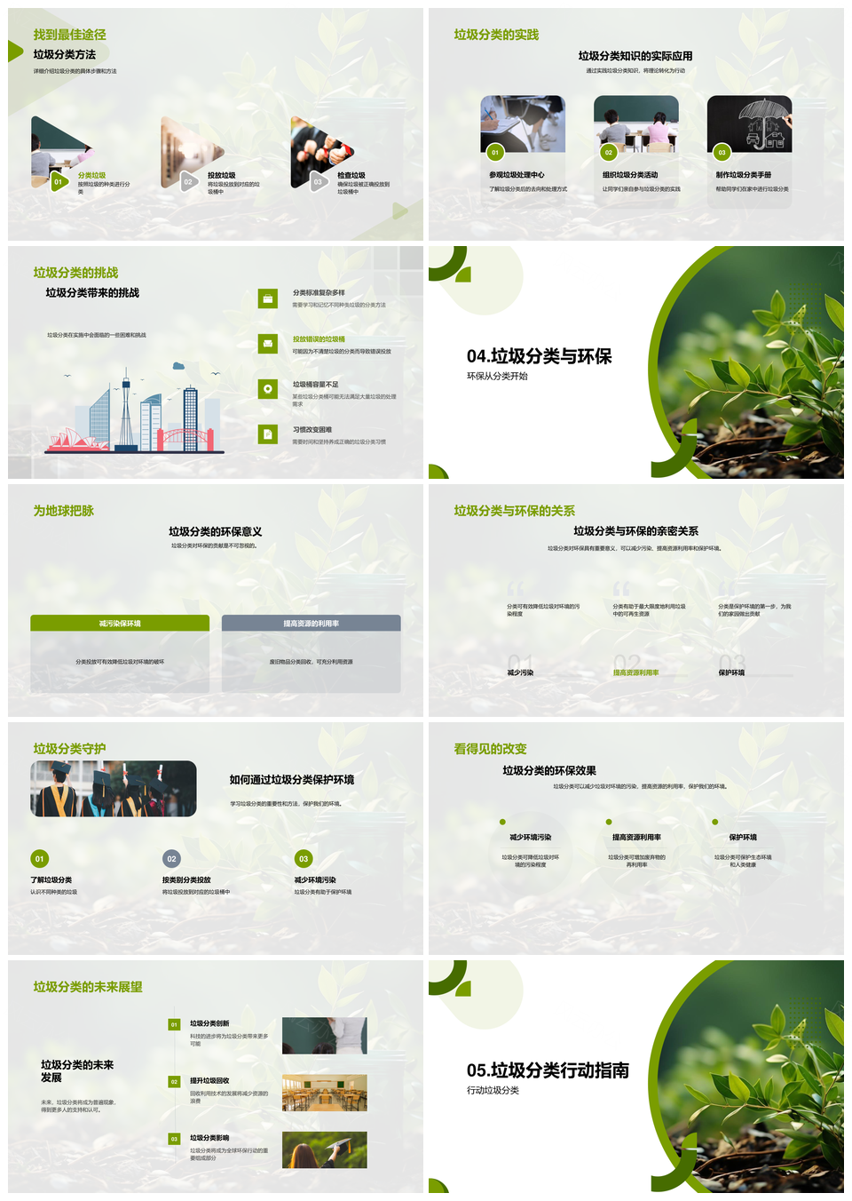风云办公提供的垃圾分类实践提升资源利用率护生态PPT模板,下载格式为pptx,一共33页,作品中文字及图均可以修改和编辑,图片更改请在作品中右键图片并更换,文字修改请直接点击文字进行修改。