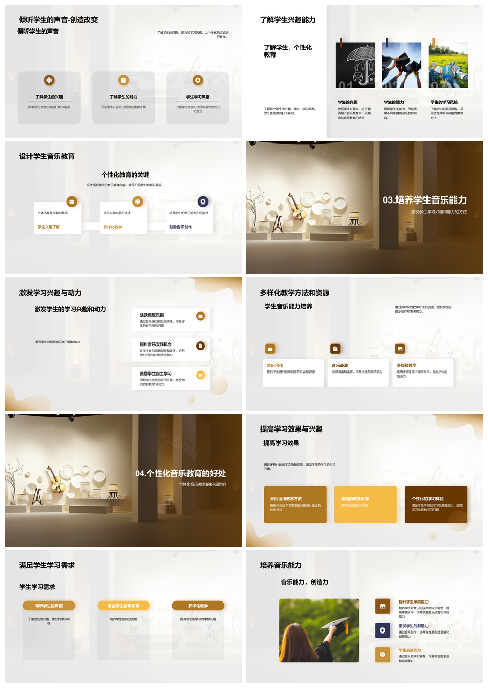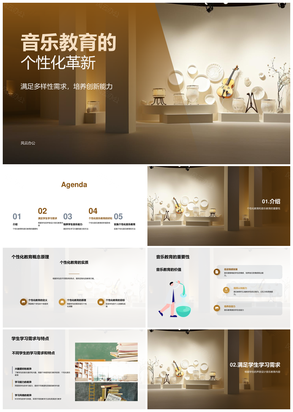 风云办公提供的个性化音乐教育倾听学生需求兴趣PPT模板,下载格式为pptx,一共24页,作品中文字及图均可以修改和编辑,图片更改请在作品中右键图片并更换,文字修改请直接点击文字进行修改。