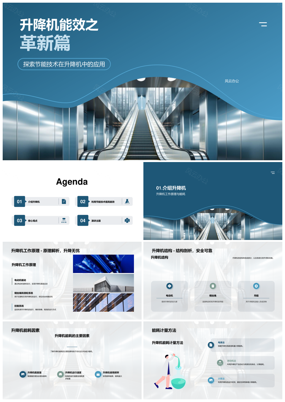 风云办公提供的升降机能效优化节能技术设计监测评估PPT模板,下载格式为pptx,一共20页,作品中文字及图均可以修改和编辑,图片更改请在作品中右键图片并更换,文字修改请直接点击文字进行修改。