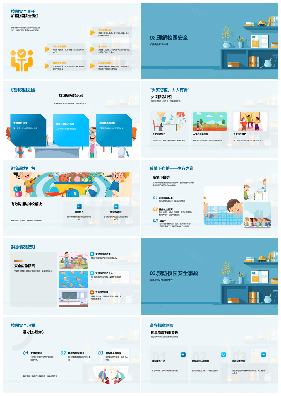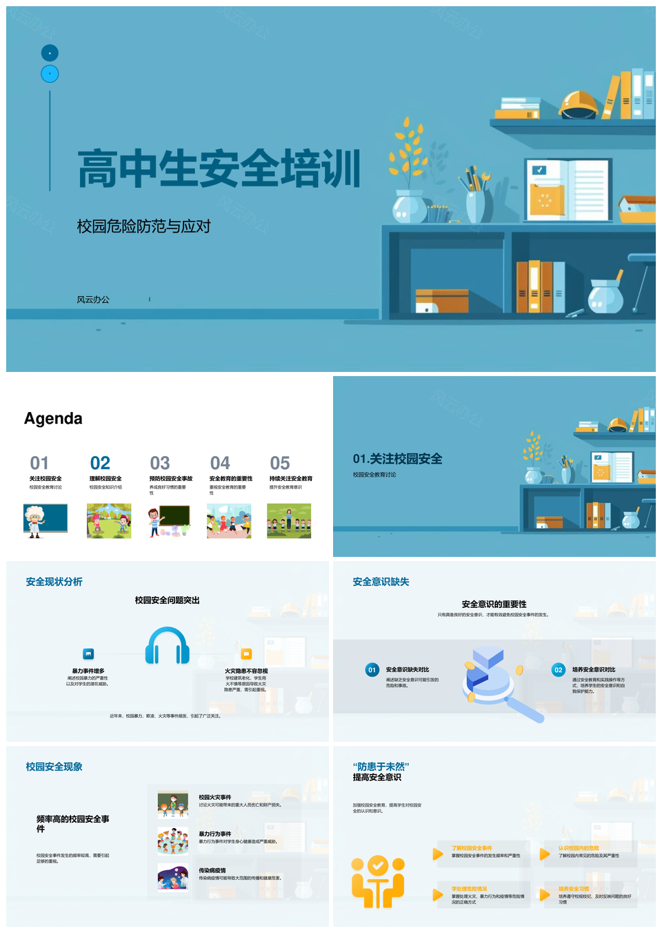 这是一张高中生校园安全防范教育疫情火灾暴力自护PPT模板,包含高中生、校园、安全防范、教育、疫情、火灾、暴力、自护等主题内容,也可用作高中生校园安全防范、校园安全防范教育、安全防范教育疫情、防范教育疫情火灾、教育疫情火灾暴力、疫情火灾暴力自护、高中生校园安全、校园安全防范、安全防范教育、防范教育疫情、教育疫情火灾、疫情火灾暴力、火灾暴力自护、高中生校园、校园安全等PPT场景使用。 风云办公提供的高中生校园安全防范教育疫情火灾暴力自护PPT模板,下载格式为pptx,一共33页,作品中文字及图均可以修改和编辑,图片更改请在作品中右键图片并更换,文字修改请直接点击文字进行修改。
