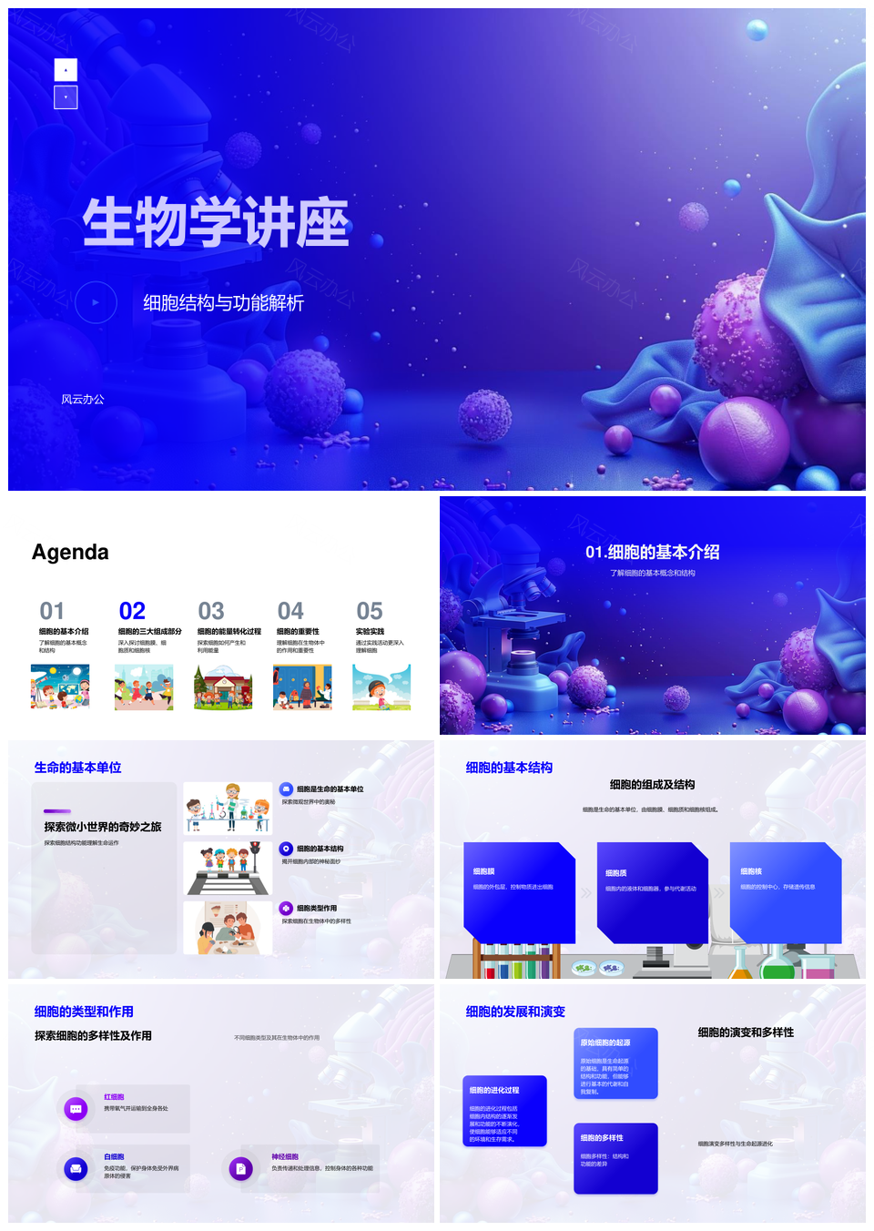 风云办公提供的生物讲座细胞结构类型解析PPT模板,下载格式为pptx,一共33页,作品中文字及图均可以修改和编辑,图片更改请在作品中右键图片并更换,文字修改请直接点击文字进行修改。