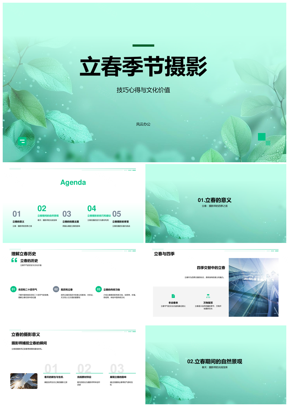 立春光影新芽摄影技巧人文景观时地主题PPT模板推荐