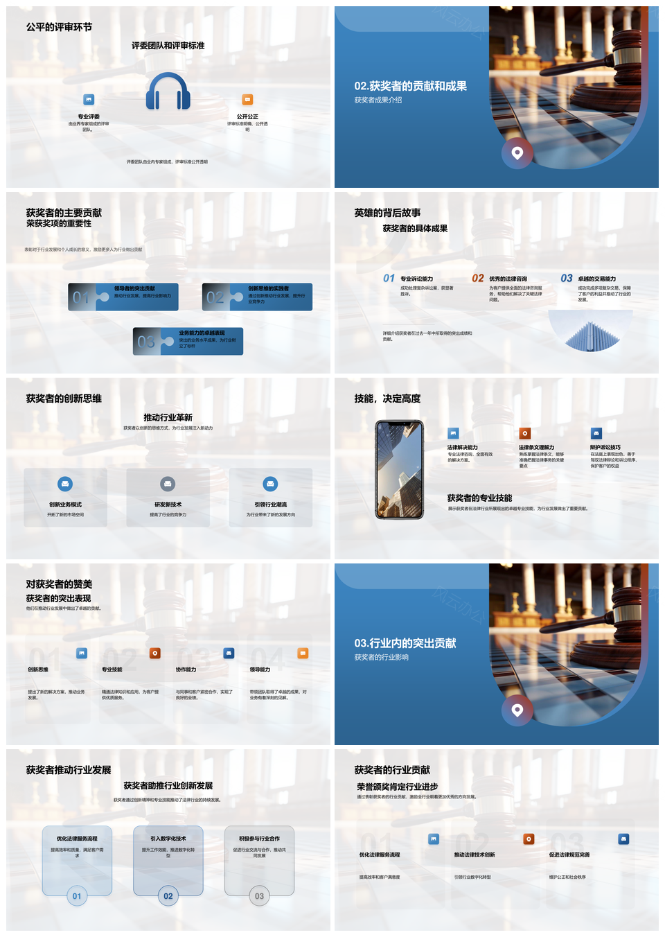 风云办公提供的法律卓越奖公正评选助推行业未来PPT模板,下载格式为pptx,一共33页,作品中文字及图均可以修改和编辑,图片更改请在作品中右键图片并更换,文字修改请直接点击文字进行修改。