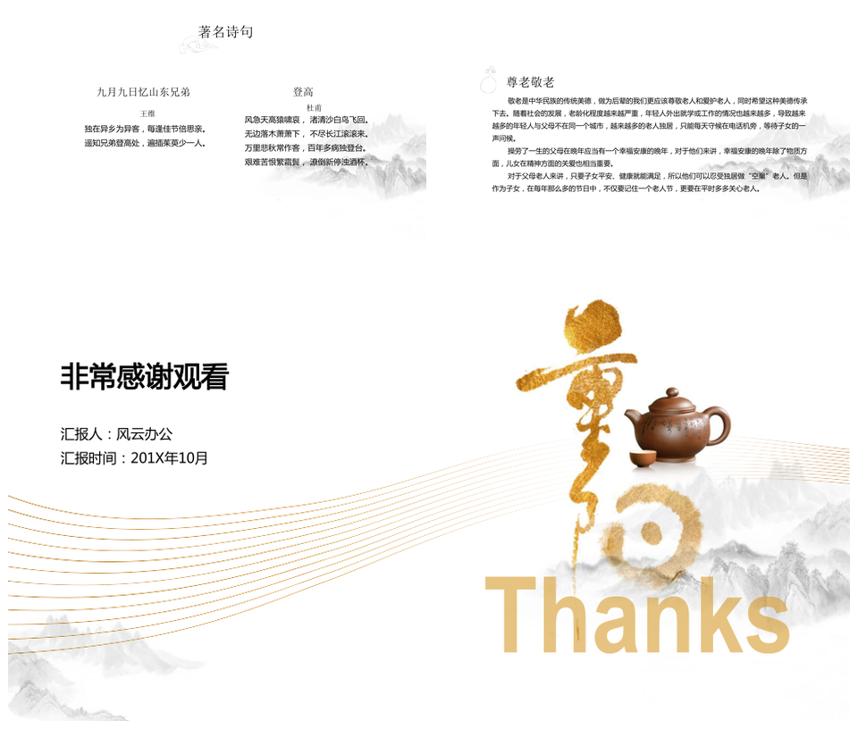 灰色简约文艺泼墨中国风淡雅重阳节PPT模板