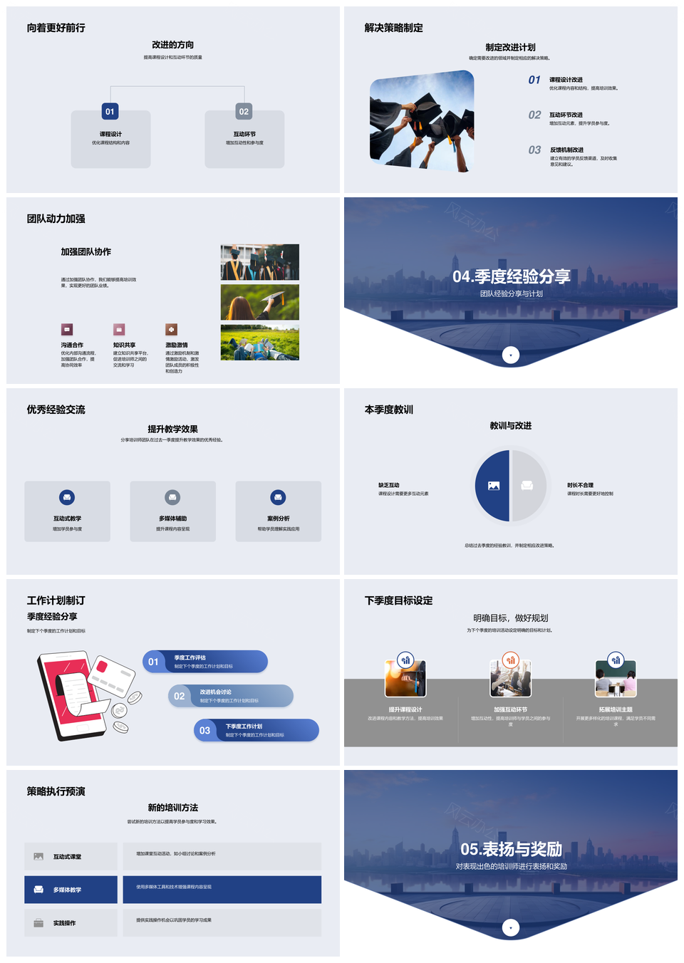 培训师季度总结行业趋势新季教育培训项目质保目标PPT模板