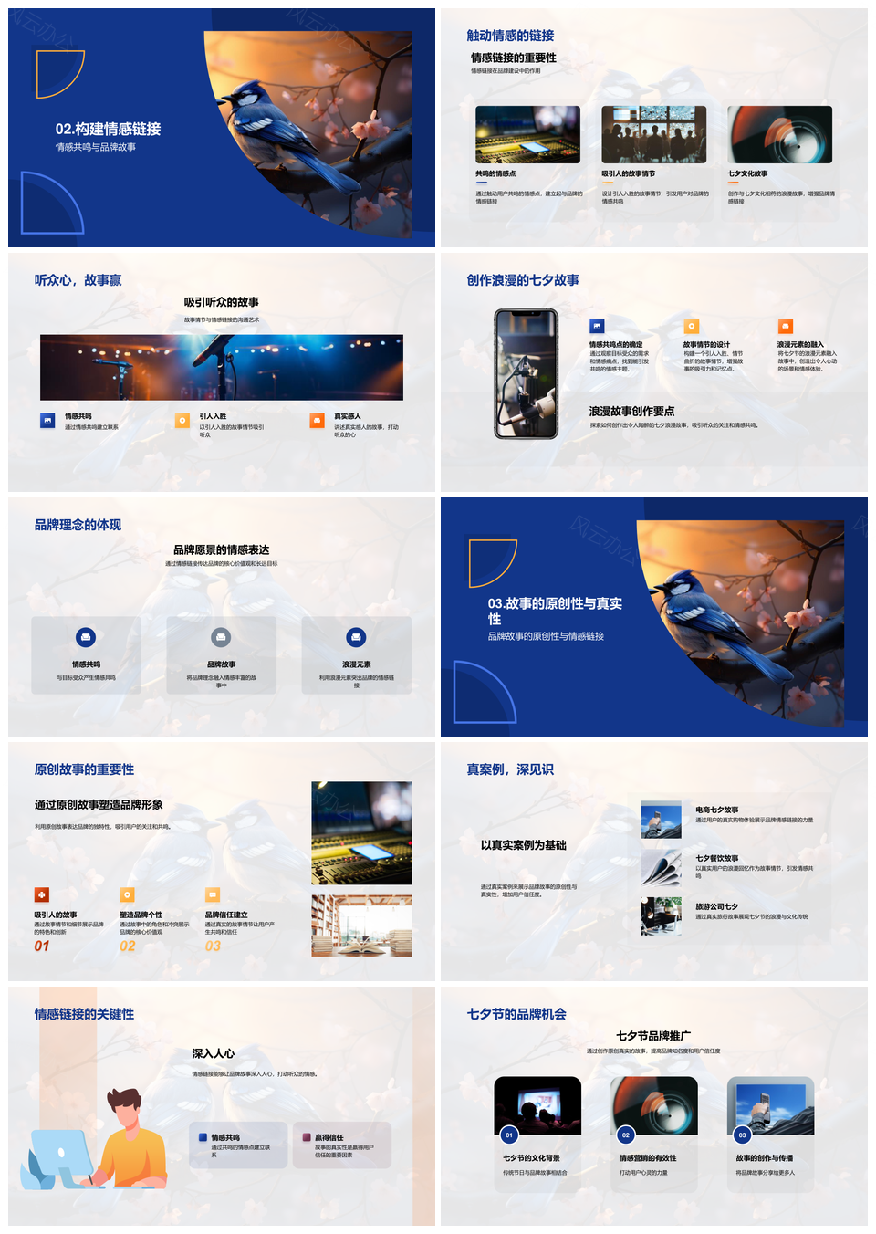 七夕鹊桥品牌故事情感链接原创真实情感营销PPT模板推荐