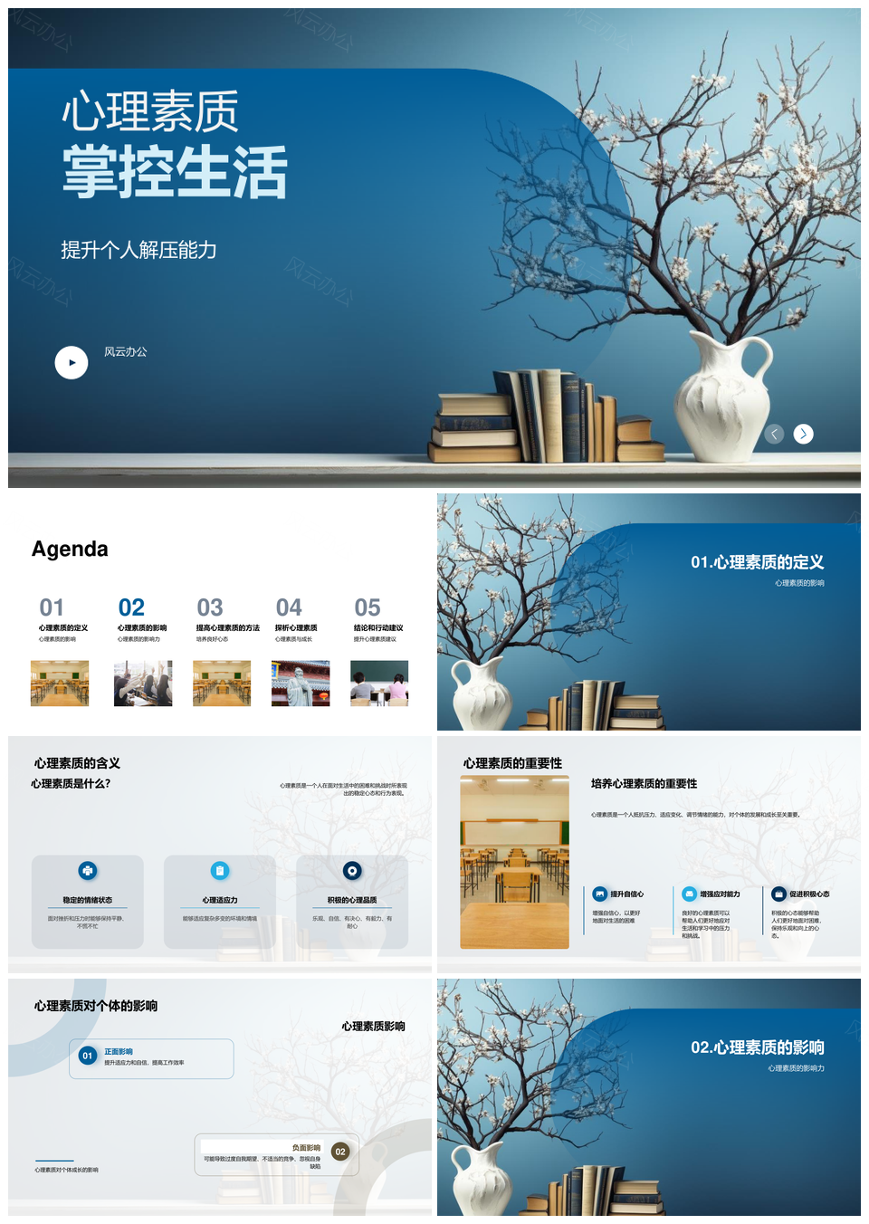 风云办公提供的大学生心理素质课程解压情绪管理技巧PPT模板,下载格式为pptx,一共26页,作品中文字及图均可以修改和编辑,图片更改请在作品中右键图片并更换,文字修改请直接点击文字进行修改。