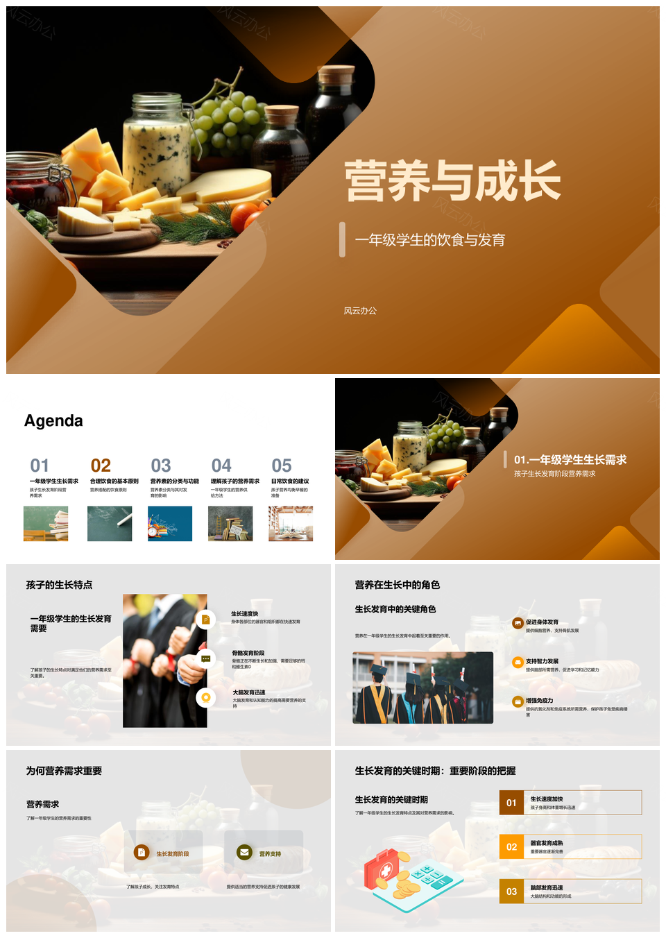 风云办公提供的一年级学生成长营养需求与饮食原则PPT模板,下载格式为pptx,一共28页,作品中文字及图均可以修改和编辑,图片更改请在作品中右键图片并更换,文字修改请直接点击文字进行修改。
