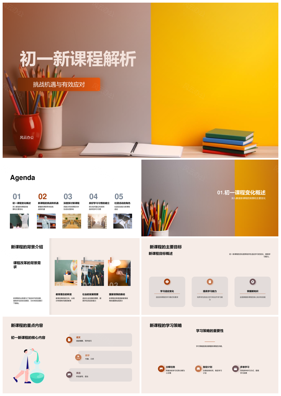 初一新课程挑战机遇与应对策略PPT模板推荐