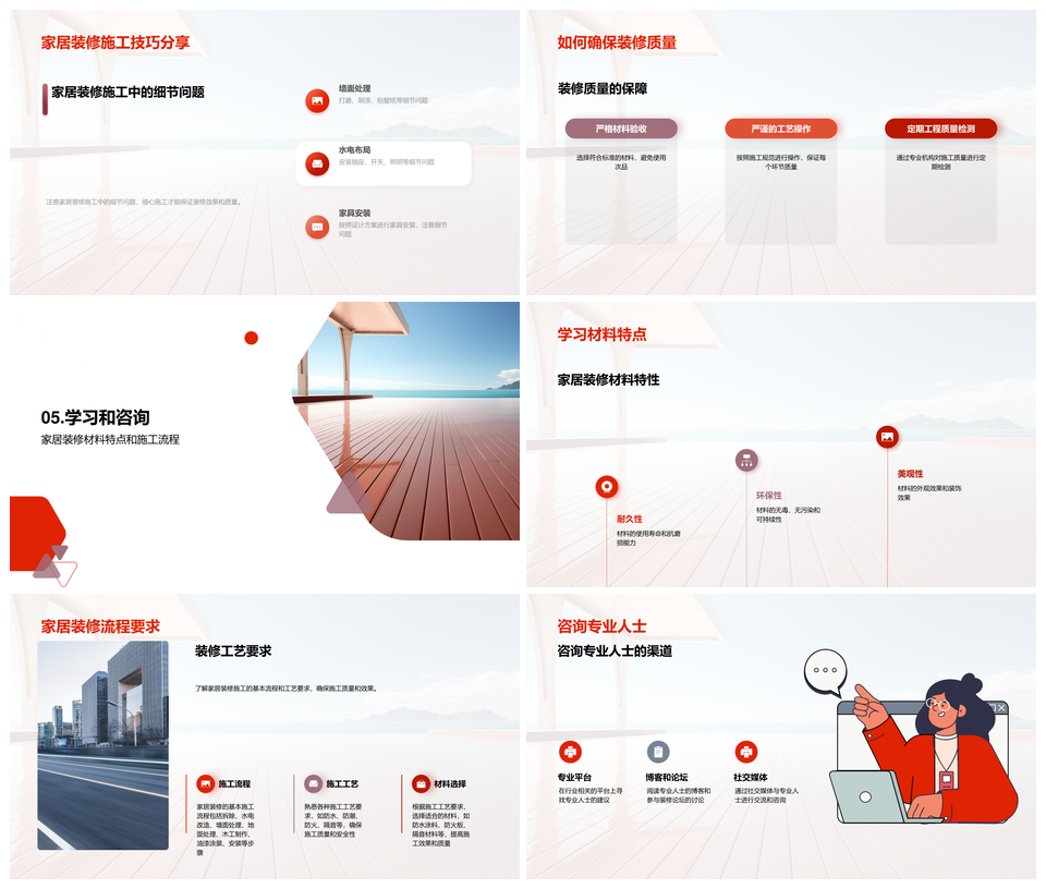 这是一张家居装修材料施工技巧与工艺解析PPT模板,包含家居、装修、材料、施工、技巧、工艺、解析等主题内容,也可用作家居装修材料施工、装修材料施工技巧、材料施工技巧工艺、施工技巧工艺解析、家居装修材料、装修材料施工、材料施工技巧、施工技巧工艺、技巧工艺解析、家居装修工艺、装修施工技巧、材料施工工艺、家居装修、装修材料、材料施工等PPT场景使用。